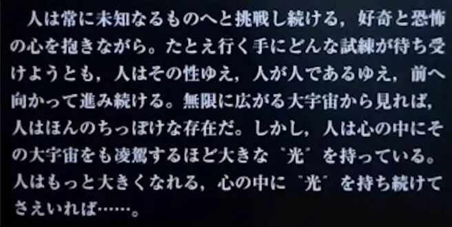 People are always challenging unknown things, with curiosity and fear in their hearts. Even if there are huge tests waiting on the journey, people are like this, because people are human, so they keep moving forward. From the perspective of the infinitely vast universe, human beings are just a small existence. However, people also have a huge light in their hearts that transcends the great universe. People will become stronger as long as they continue to have light in their hearts. .