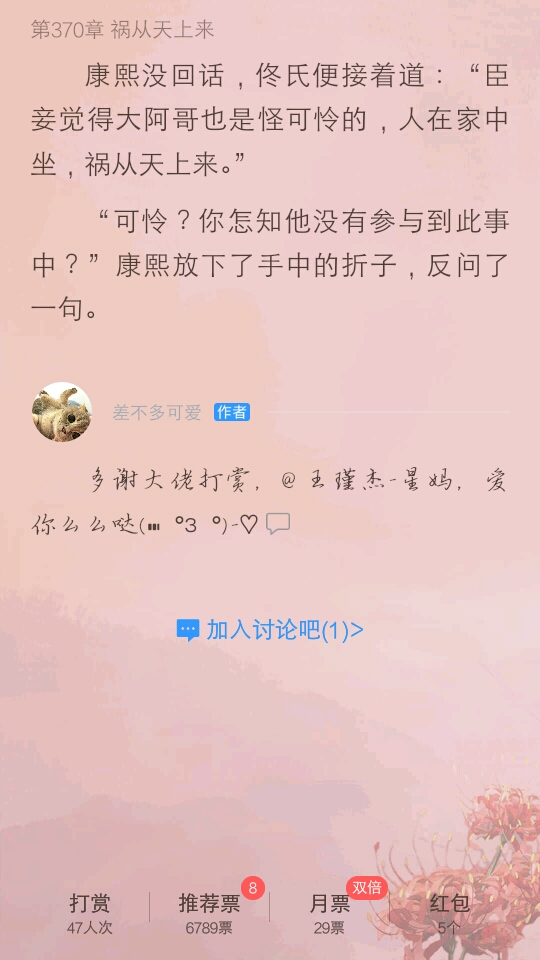Seeing that the male protagonist had so many women before the female protagonist, although I can understand that the male protagonist's thoughts in the feudal dynasty were different from ours now, I still don't like it. Although I really don't like the male protagonist, this book is still very good. I support it and give it a thumbs up. 👍👍👍👍👍🌸🌸🌸🌸🌹🌹🌹🌹🌹🌺🌺🌺🌺🌷🌷🌷🌷🌷🌻🌻🌻🌻❤❤❤❤❤