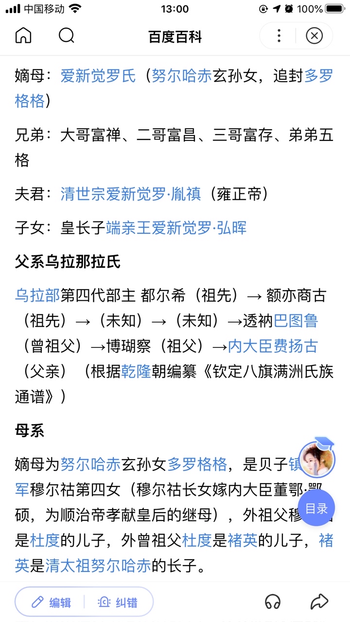 I recently read the chapter review and found that many babies have questions about the surname of Yu Ning's aunt. In fact, in history, the aunt of Ulanara's aunt was Aisin Gioro. I was shocked when I searched it. Ulanara was born into a noble family, and her father was Fei Yanggu, the admiral of the Nine Sects. You should know that it is very popular for a military commander to climb to the top three ranks. However, many novels have made some adaptations of her origin by writing her as a villain. Although this book has stated that it is not the historical Qing Dynasty, I still want to strive for authenticity. All in all, I personally am a person who pursues details. Historically, Empress Xiao Jingxian was famous as a empress, and she was also the only empress during Yongzheng's reign. Even Niu Hulu was a posthumous queen after Qianlong ascended the throne~~~