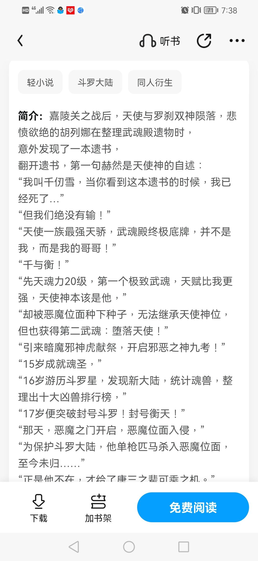 After the Battle of Jialing Pass, the angels and Rakshasa gods fell. The grief-stricken Hu Liena was sorting out the relics of Wuhun Palace. I accidentally found a suicide note. Opening the suicide note, the first sentence is the angel god's self-narration: "My name is Qian Renxue. When you see this suicide note, I will be dead..." "But we never lost!" "The most powerful genius of the Angel Clan, the ultimate trump card of Wuhun Palace, is not me, but my brother!" "Qian Yuheng!" "Innate soul power level 20, the first ultimate martial soul, more talented than me, he should be the angel god," "But the seeds were planted by the devil plane. He could not inherit the angelic position, but he also obtained the second martial spirit: fallen angel!" "Invite the Dark Demon Evil God Tiger to sacrifice and start the Nine Examinations of the Evil God!" "Becoming a Soul Saint at the age of 15," "When I was 16 years old, I traveled to Douluo Planet, discovered the New World, counted soul beasts, and compiled a ranking of the top ten ferocious beasts." "I broke through the title Douluo at the age of 17! I was titled Hengtian!" "That day, the devil's door opened and the devil's plane invaded," "In order to protect Douluo Continent, he single-handedly entered the demon plane and has not returned yet..." "It was his absence that gave Tang San and his people the opportunity to take advantage of it." "Now that decades have passed, he must have become a god. As long as we bring him back, our Spirit Hall can make a comeback!" ... With the discovery of the suicide note, When these shocking secrets came to light, the frustrated Hu Liena and others regained hope and were planning to bring Qian Yuheng back. However, the Tang Sect disciples who were encircling and suppressing the remnants of Wuhun Palace caught them, and this suicide note was also sent to the God King Tang San...