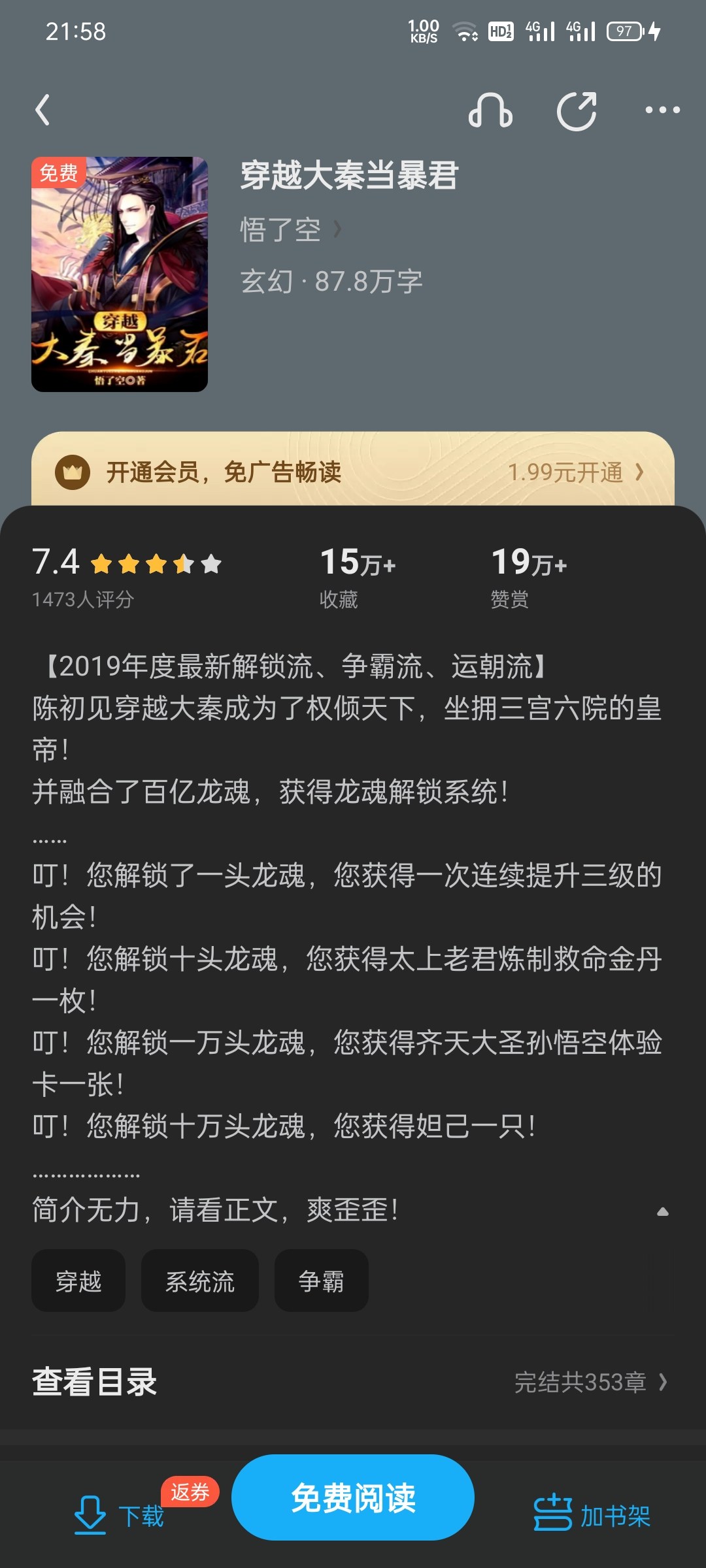 The world of gods, demons, immortals and heroes competes for hegemony. There are hundreds of sects and clans, and the protagonist is the emperor. There is a system, but the system has no intelligence. He follows the path of a tyrant and is domineering and lustful, so he is a stallion. The writing is good, and the pacing and characters are acceptable. The gold finger is relatively large and overall it is more refreshing. My personal rating is three and a half stars (my rating may be slightly lower because I personally don't like stallion stories). Overall, it's about food.