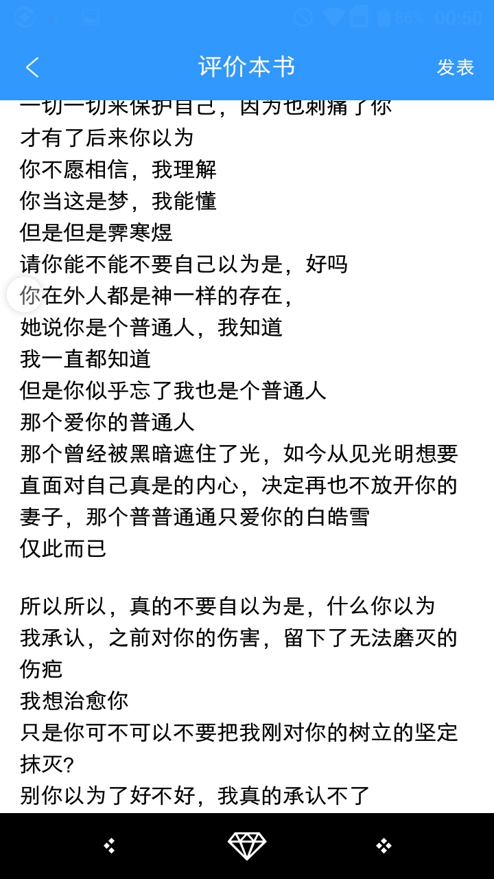 Dad, to tell you the truth, I actually clicked in to read this book for free🌚🌚, but when I read the first chapter, it gave me a big surprise. I have read too many books, and there are not many that can make me feel good, but Dad, you caught my attention with the first chapter. Going to the back, the more I read, the more frightened I am. Although the love story between the male protagonist and the female protagonist is often mentioned in the book, your different way of writing it makes me happy. I really like the role of the male protagonist created by Dada. I really, really like it... However, this is how the book is after all. When I saw the performance of the male and female protagonists at Bai Xiong'an's banquet, and the matching shirts described by Dada, I was very disappointed. It was the first time I was disappointed with a book that I liked in just one page. The banquet section was so different from the previous one, and it was unsatisfactory. It was not as immersive as the previous one. This was what disappointed me the most... I can't express my feelings about the change of the male protagonist. I just felt that it was very awkward. There was no preamble, so it was changed like this? However, I want to say, big brother, a little mistake can only be regarded as a stumbling block. I am still looking forward to your subsequent stories. I will not give up on this book, but I can only vote for you~ Come on, big brother, show your true level and conquer the picky people like us! ! ! Classmates, for the sake of us all reading such a beautiful book, please don't criticize me🌚