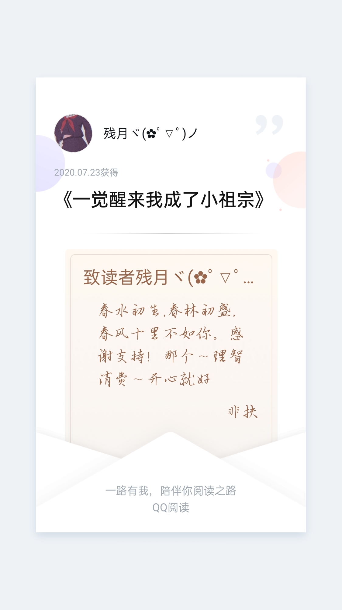 Check in and check in ~ I believe you have received the votes from my account. I like the plot of DaDa very much, and (quietly), I find that DaDa's writing is getting better and better! (I believe you will definitely write better and better) Also, readers who don't remind me of updates are not good readers. I urge you to remind me of updates online! Σ>―(°ω°)♡→