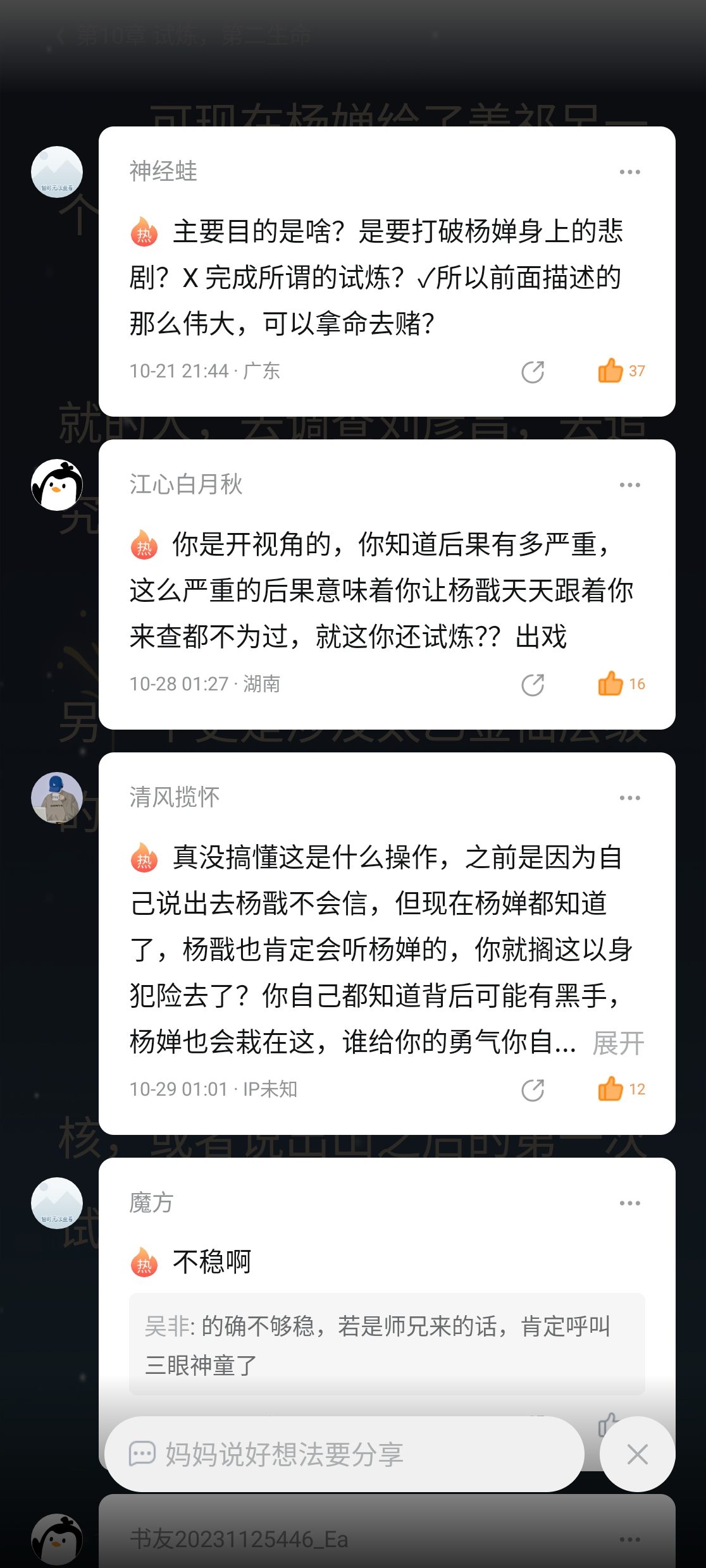 Everything else is fine. There are some flaws in the plot that don't matter. What are you most afraid of? The collapse of the character. The previous performance was so sacrificial for others, a drop of kindness, a spring of repayment, a life for a life at most. Then the operation is like this. Let a person who is about to become an immortal go to school. This kind of operation does not matter. Small flaws, and then you cause the collapse of the character. Now the protagonist behaves arrogant and stupid, which makes readers feel that they hate this protagonist. How can you, uncle, be better? More than a dozen comments are all scolding. There is only one small account there. And the score of this book is still 9 points. Now QQ reading is really awesome.