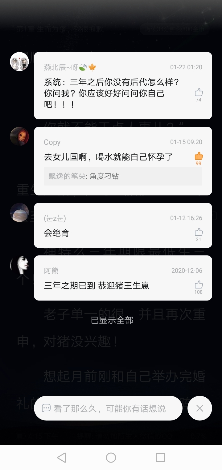 I was just here and saw the system posting a task, and then I had a personal idea and replied that I could go to the Daughter Country and take a sip of water from the Zimu River so that I could give birth on my own👍👍👍😂😂😂