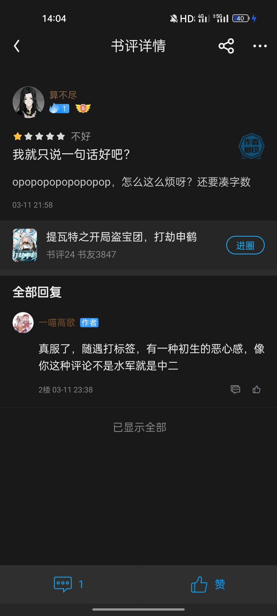It's very good. Come on, author. I was fascinated by it and read it in one breath. I suggest you read the book first before commenting. What do you know if you haven't even read the book?