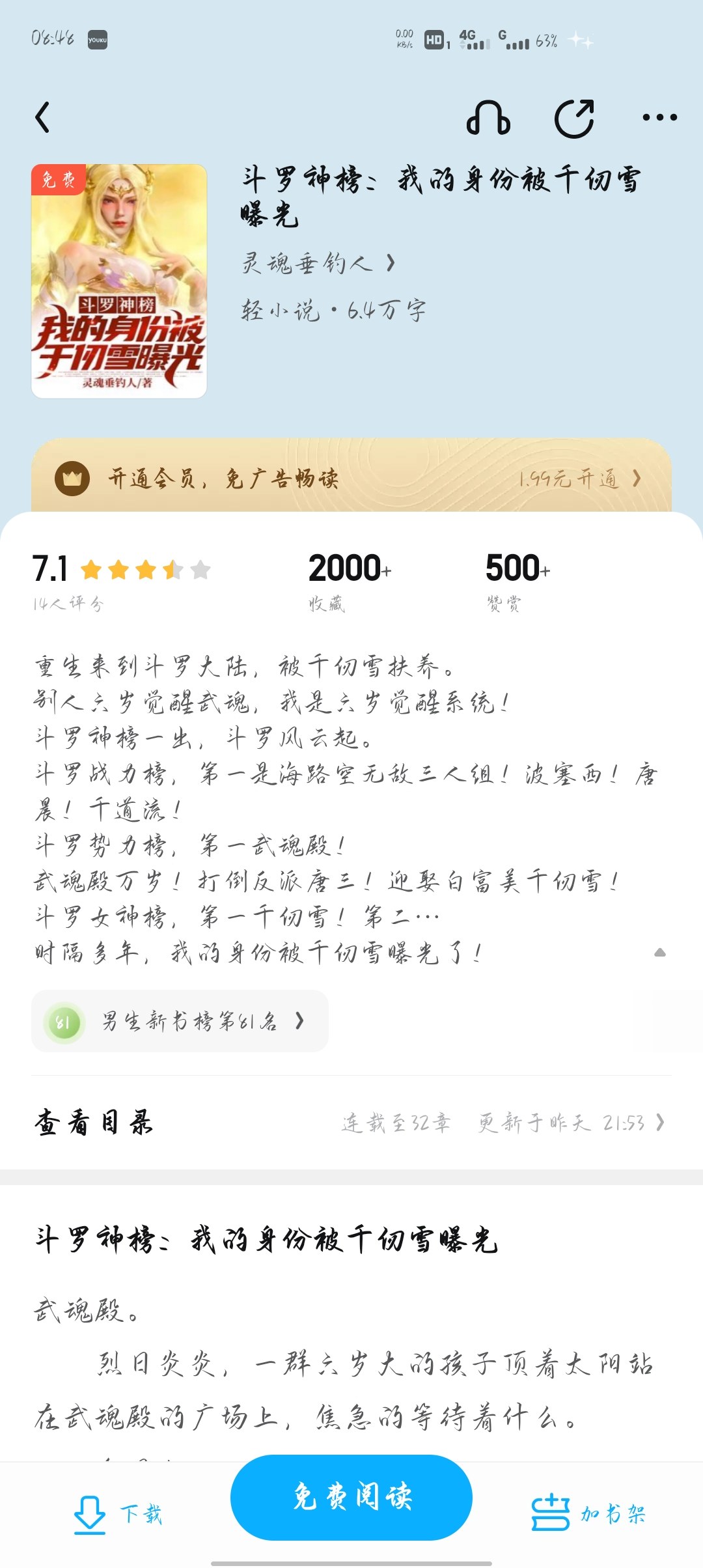 He was reborn and came to Douluo Continent and was raised by Qian Renxue. Others awakened their martial souls at the age of six, but I awakened my system at the age of six! As soon as the Douluo God List came out, Douluo became popular. In the Douluo combat power list, the first place is the invincible trio of sea, air and air! Bo Saixi! Tang Chen! Qian Daoliu! Douluo Power Ranking, No. 1 Spirit Hall! Long live Wuhun Palace! Defeat the villain Tang San! Marry Bai Fumei Qian Renxue! Number one on the Douluo Goddess List, Renxue! Second... After many years, my identity was exposed by Qian Renxue!