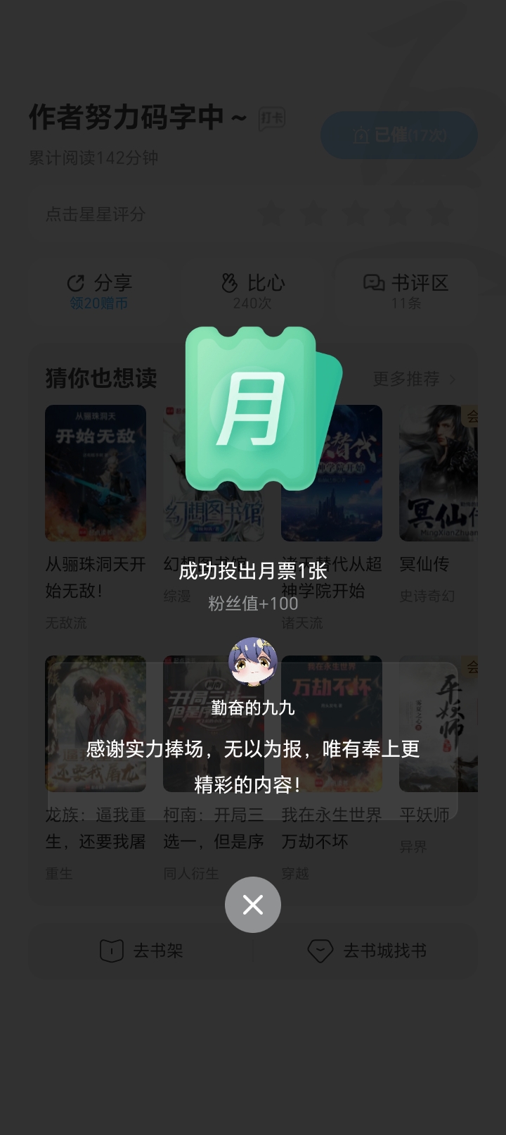 The author has written out the characteristics of both sides of the world of fox demons and mortals cultivating immortals. I personally think this book has great potential. Come on