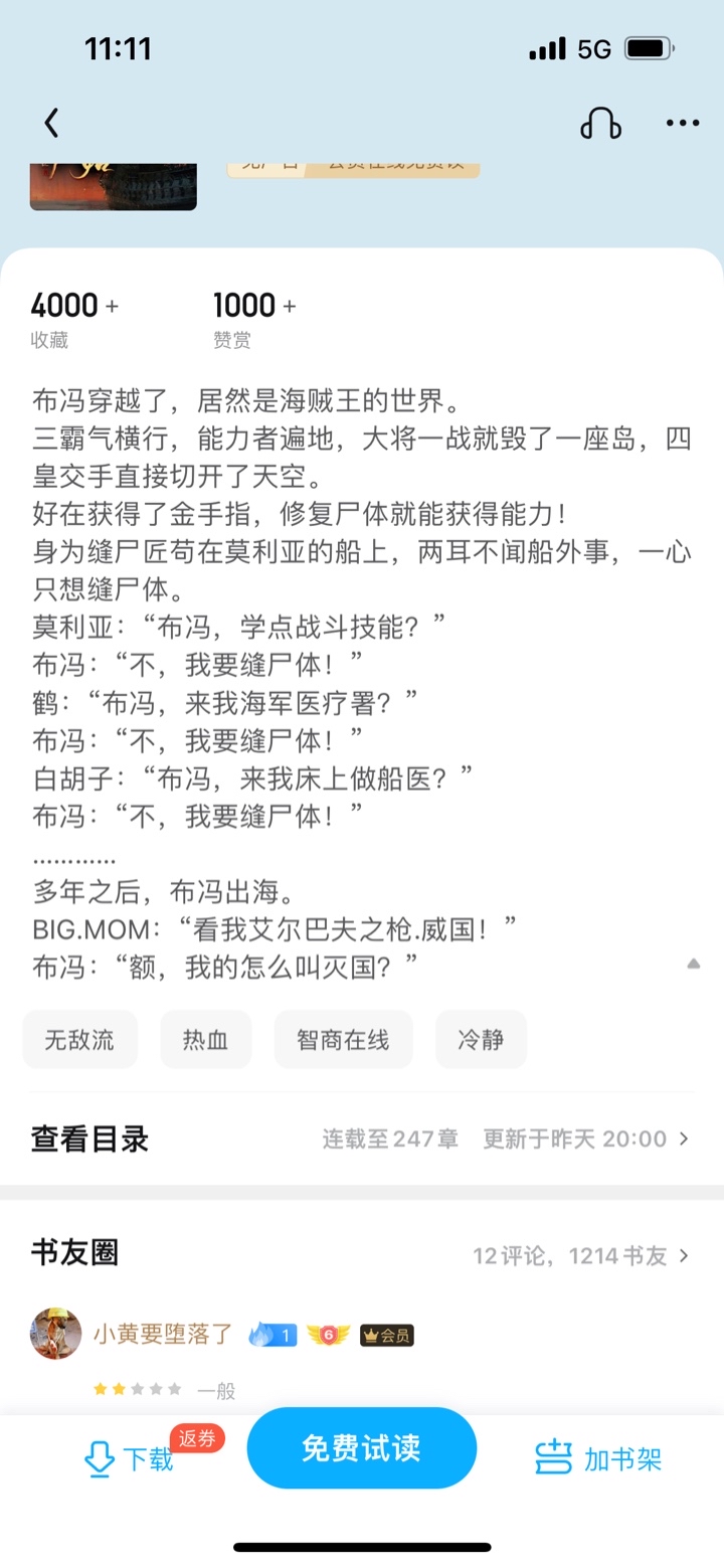 Buffon traveled through time, and it turned out to be the world of One Piece. The three lords are rampant, people with abilities are everywhere, the generals destroyed an island in one battle, and the four emperors cut the sky when they fought. Fortunately, if you get the golden finger, you can gain abilities by repairing the corpse! As a corpse stitcher, he stayed on Moria's ship, ignoring what was going on outside the ship and only wanted to sew corpses. Moria: "Buffon, learn some combat skills?" Buffon: "No, I want to sew up the body!" Crane: "Buffon, come to the Naval Medical Department?" Buffon: "No, I want to sew up the body!" Whitebeard: "Buffon, come to my bed and be the ship's doctor?" Buffon: "No, I want to sew up the body!" ............ Years later, Buffon went to sea. BIG. MOM: "Look at my Elbaf's gun. The power of the country!" Buffon: "Well, why do I call it the destruction of the country?"