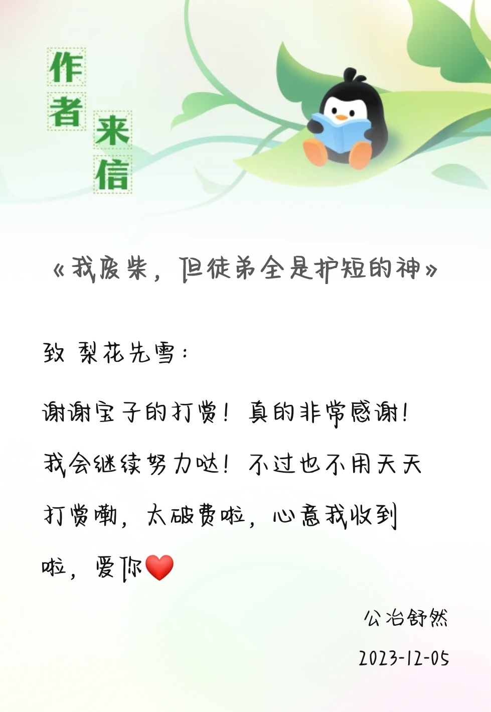 Baozi, I have been idle for a long time recently. I may have to cancel the subscription for a while to enrich myself and restart myself😊I will come back to read your article when I can be more consistent🥹Just treat it as a period of time and then read it🥺I can't send you recommendation votes every day, which is a pity! However, I still have to praise you again! Really well written! Very cool! ! Your article will definitely become a hit! I don't know if you have ever been unable to persevere. I am a pessimistic person, so I always guess that others may be as pessimistic as me, so I like straightforward praise, hoping to give others some strength when they are pessimistic. If you occasionally have pessimistic thoughts, I hope that my praise will bring you strength and allow you to persist in doing what you want to do! During the period when I can't pay attention to you every day, I hope you can write happily and live happily at the same time! 🥰