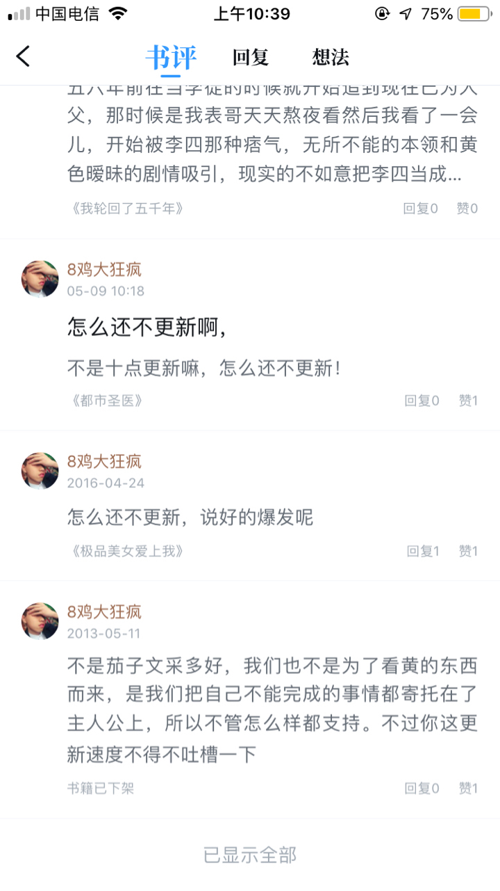 I started chasing him five or six years ago when I was an apprentice, and now I am a father. At that time, my cousin stayed up late to watch it every day. Then I watched it for a while, and began to be attracted by Li Si's ruffianism, omnipotent ability and pornographic and ambiguous plot. The unsatisfactory reality and Li Si were regarded as my own fantasy. After watching it for so many years, the more I watched, the more disappointed I became. The script is forced to write, and the routine plot is the same. The heroine in each book will be kidnapped ten or eight times, and the updates are becoming less and less. In the past, it would break out when celebrating holidays, but now even new books are mixed, becoming more and more exaggerated and perfunctory. This is my first review in six years, and it will also be my last, but thank you for giving me something to look forward to every day in the past six years!