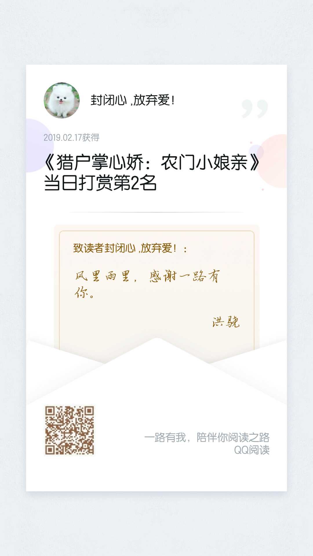 I received a big thank you letter from the writer
