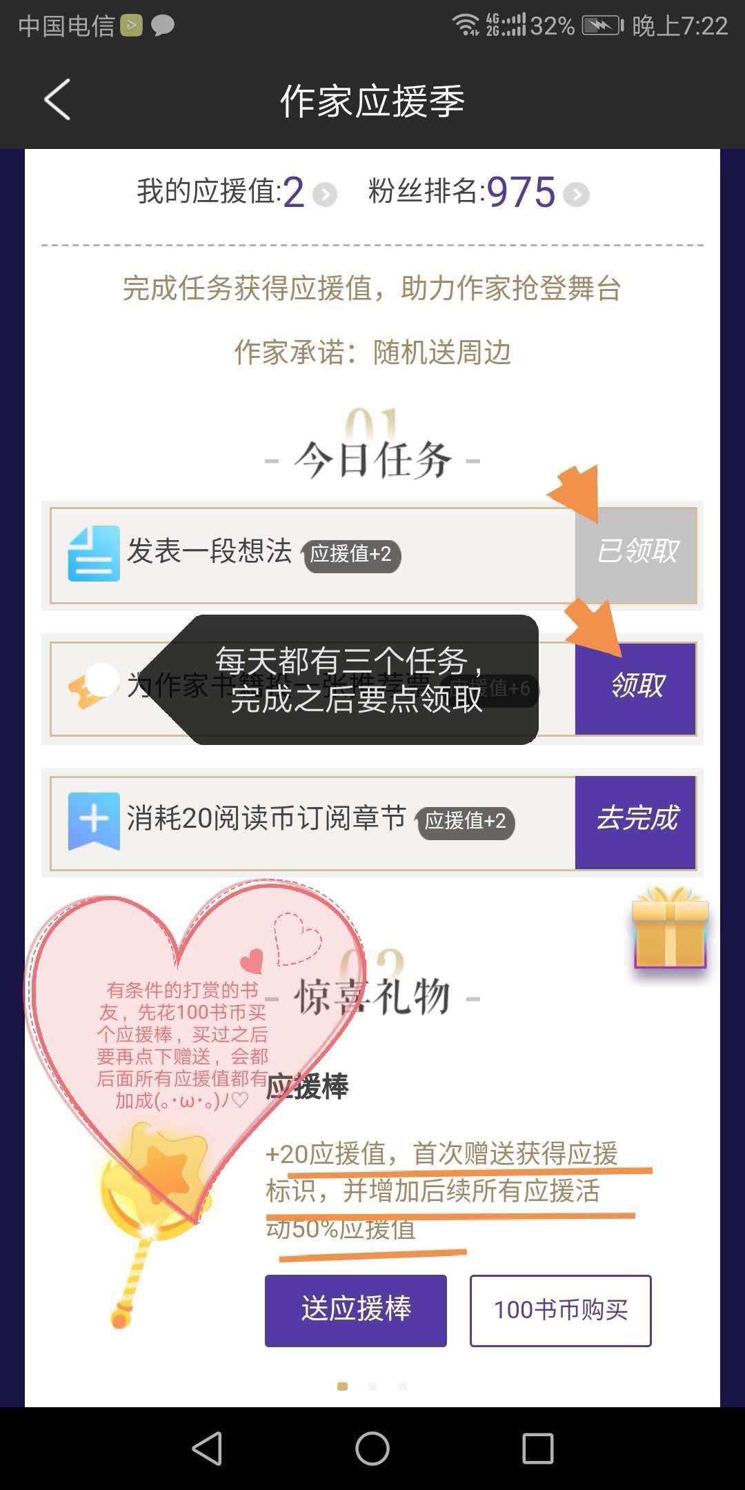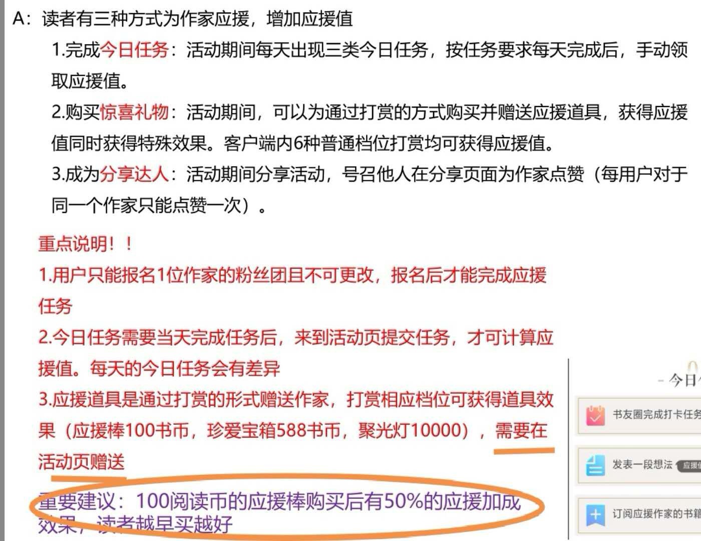 Pig is currently ranked twelfth on the overall list. There are more than 7,000 book friends participating so far, and only a few hundred have completed tasks If the overall ranking can reach the top ten, those with a support value of 1,000 or more will be given folding fans surrounding "The Legend of the Shepherd". Below are the reorganized activity guidelines and important instructions Bookshelf >> The top blue picture "Summer Support Season" >> Below "Support Writers, Seize the Stage" >> Support Zhaizhu 1. Complete mission points to receive support points. 2. If you are eligible to give a gift, first buy a support stick worth 100 book coins. After purchasing, be sure to click on the gift stick. The support value of all subsequent tasks and gifts will be increased by 150%.