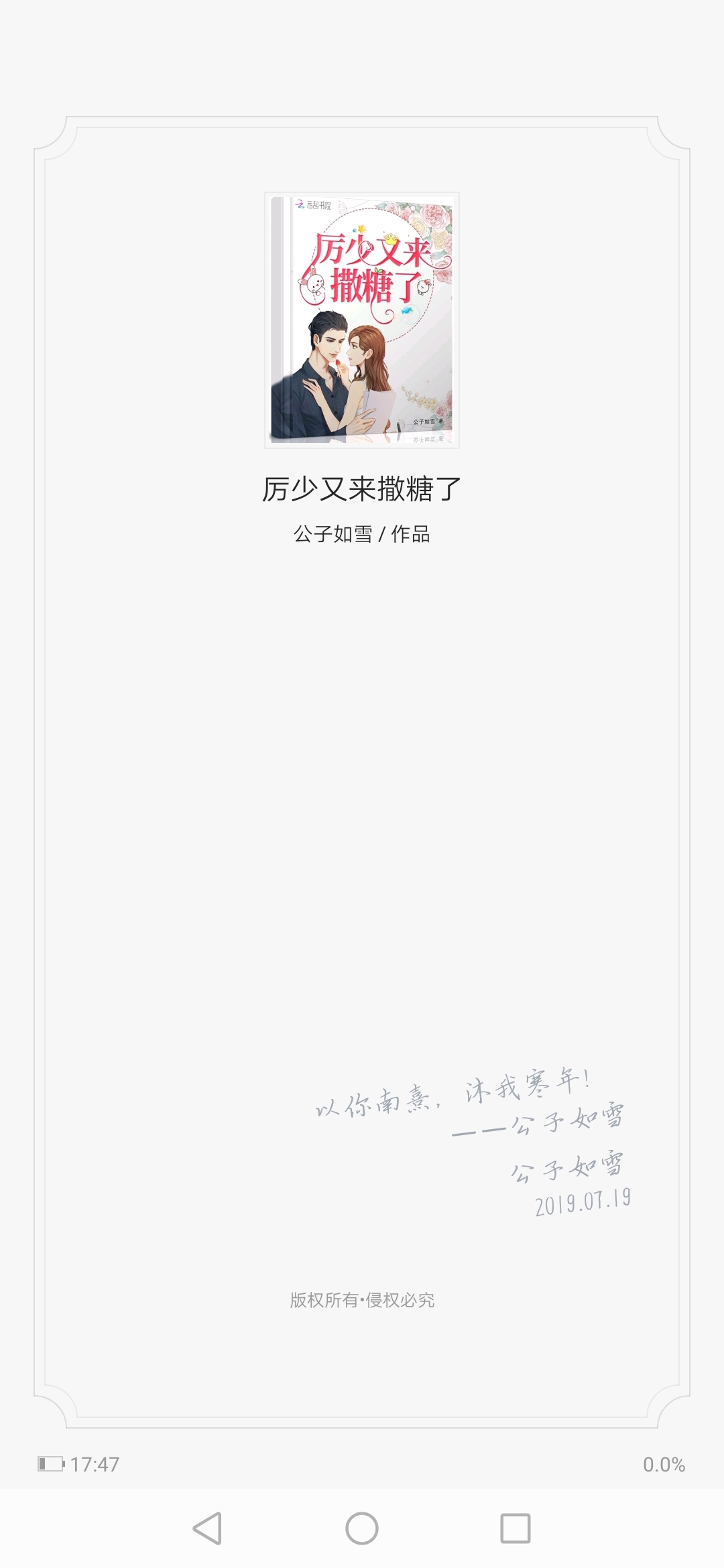 Chu Nanxi first met Li Hannian at a so-called marriage party. A group of Chu sisters nearby secretly rubbed their hands, hoping that they would be favored by the powerful Li Hannian in Jincheng, so that they could fly up a branch and become a phoenix! But I never thought that Chu Nanxi, who had never given up hope, would be chosen by our crown prince. This is probably an unexpected surprise, hahaha. But we Nanxi didn't like the Lihan Year at first. Will this turn into a fright? ? ? Hahaha, I'm just kidding, I always believe that love grows with time. The faces of those Chu family members turned green when I saw them. I was so happy that I couldn't help but think that this was probably an unintentional fight for love and the envy of all the other people! Although Nan Xi has a hideous scar on his face, Li Hannian does not dislike it. The young master's book is so sweet! ! Blow it up! ! Very nice to say. I also like music myself. I heard that the blue boy who plays the piano has very beautiful paper hands~ Well, in my eyes, Lihan Nian has no shortcomings. In Li Hannian's eyes, Chu Nanxi had no shortcomings. Hee hee hee, so happy! It's time for the junior high school party at the beginning of school. I'm afraid I won't have time to play with my mobile phone. I'll catch up on my son's books during the holidays! Finally, I confessed my love to the young master. I love the young master and love life. Mr. Wow.