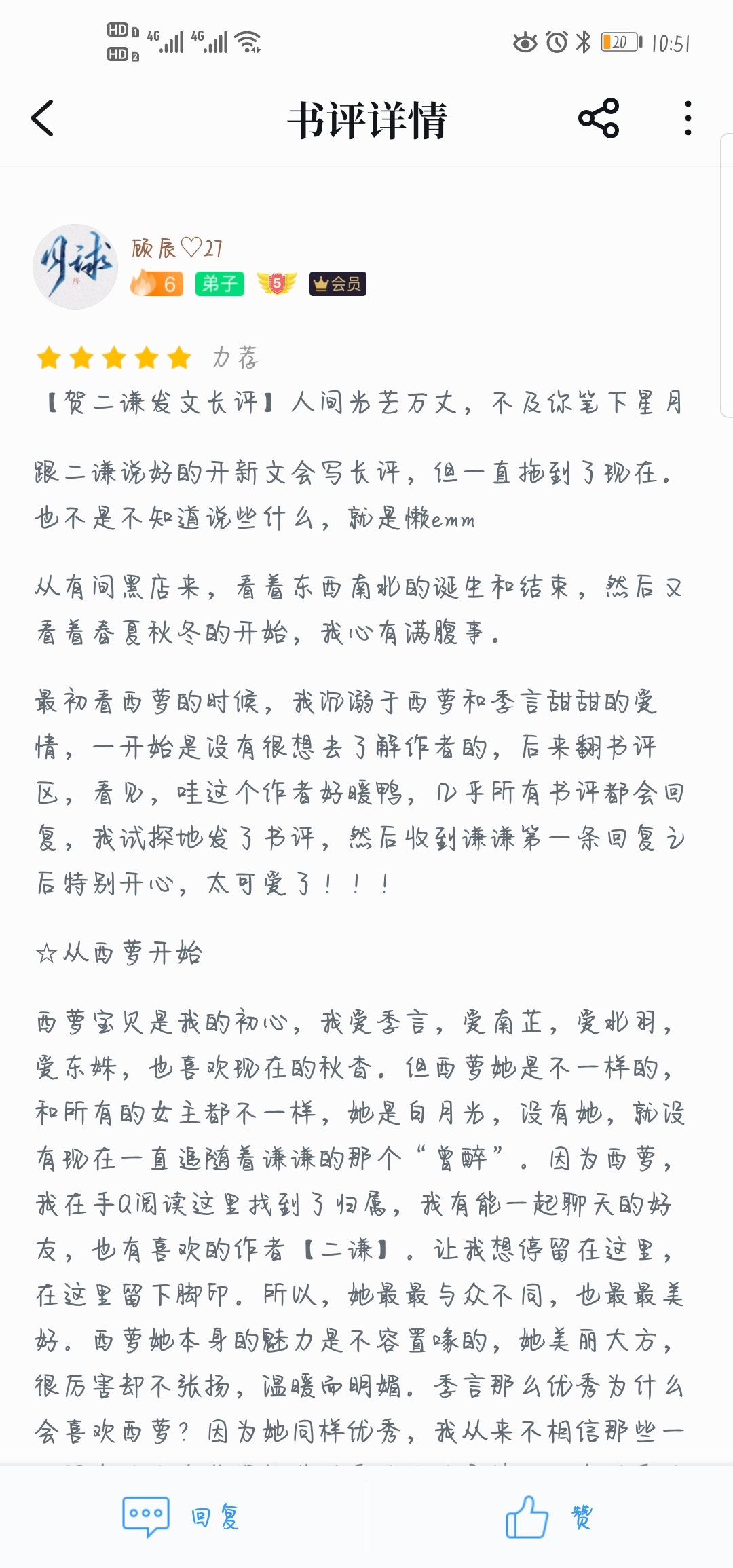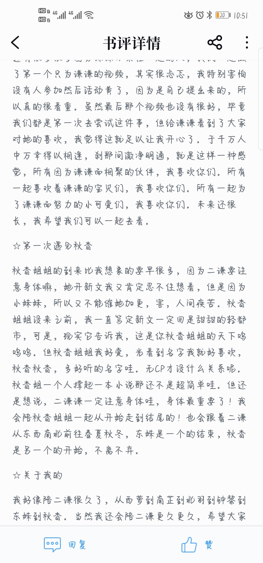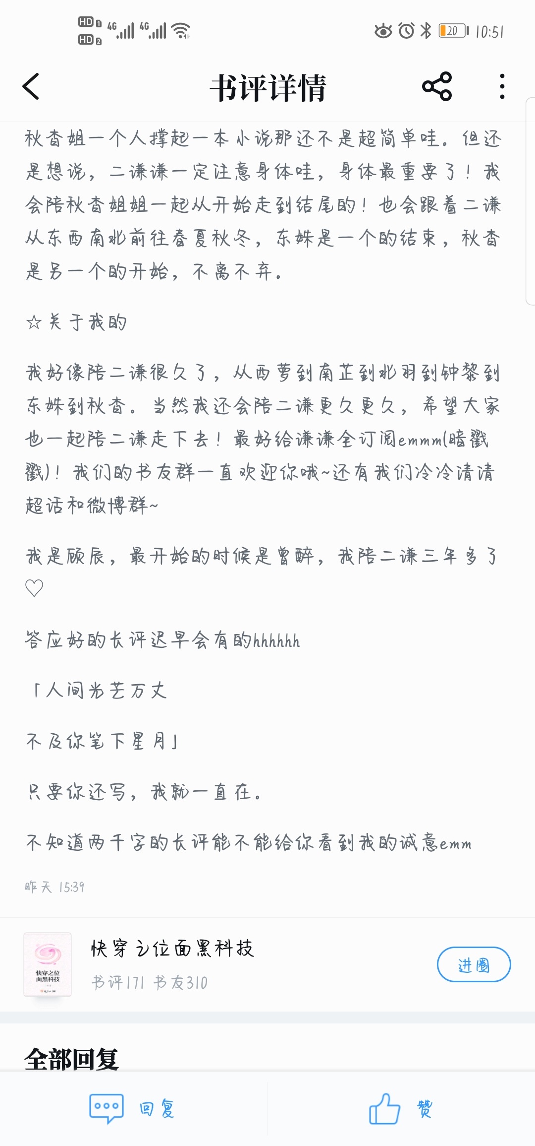 Well, it can only be in this form I seem to have been with Erqian for a long time, from Xiluo to Nanzhi to Beiyu to Zhongli to Dongshu to Qiuyao. Of course, I will stay with Er Qian for a longer time, and I hope everyone will accompany Er Qian on this journey! It's best to subscribe to Qianqianquan (em secretly)! Our book club group always welcomes you~ and our Leng Leng Qing Qing Chao Hua and Weibo groups~ I'm Gu Chen, I started out as Zeng Zui. I've been with Er Qian for more than three years♡ The long review I promised will come sooner or later hh "The world is radiant Not as good as the stars and moon you wrote." As long as you write, I will always be here. I don't know if a two thousand word long review can show you my sincerity emm