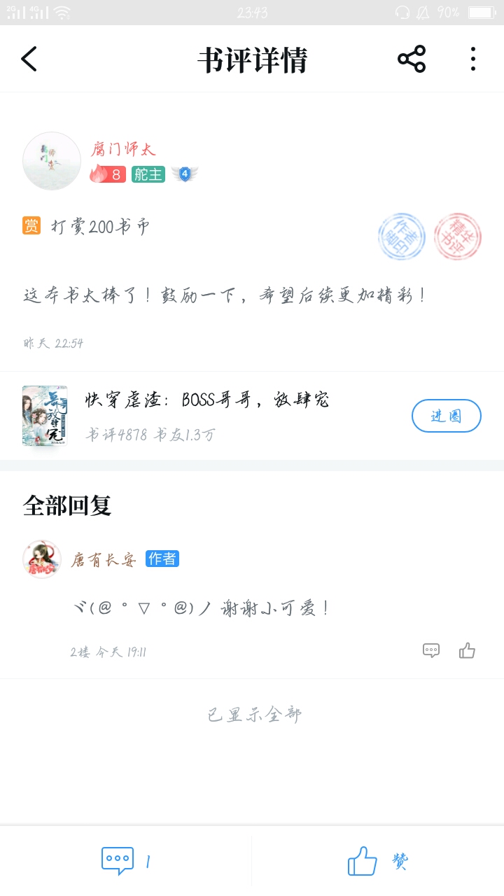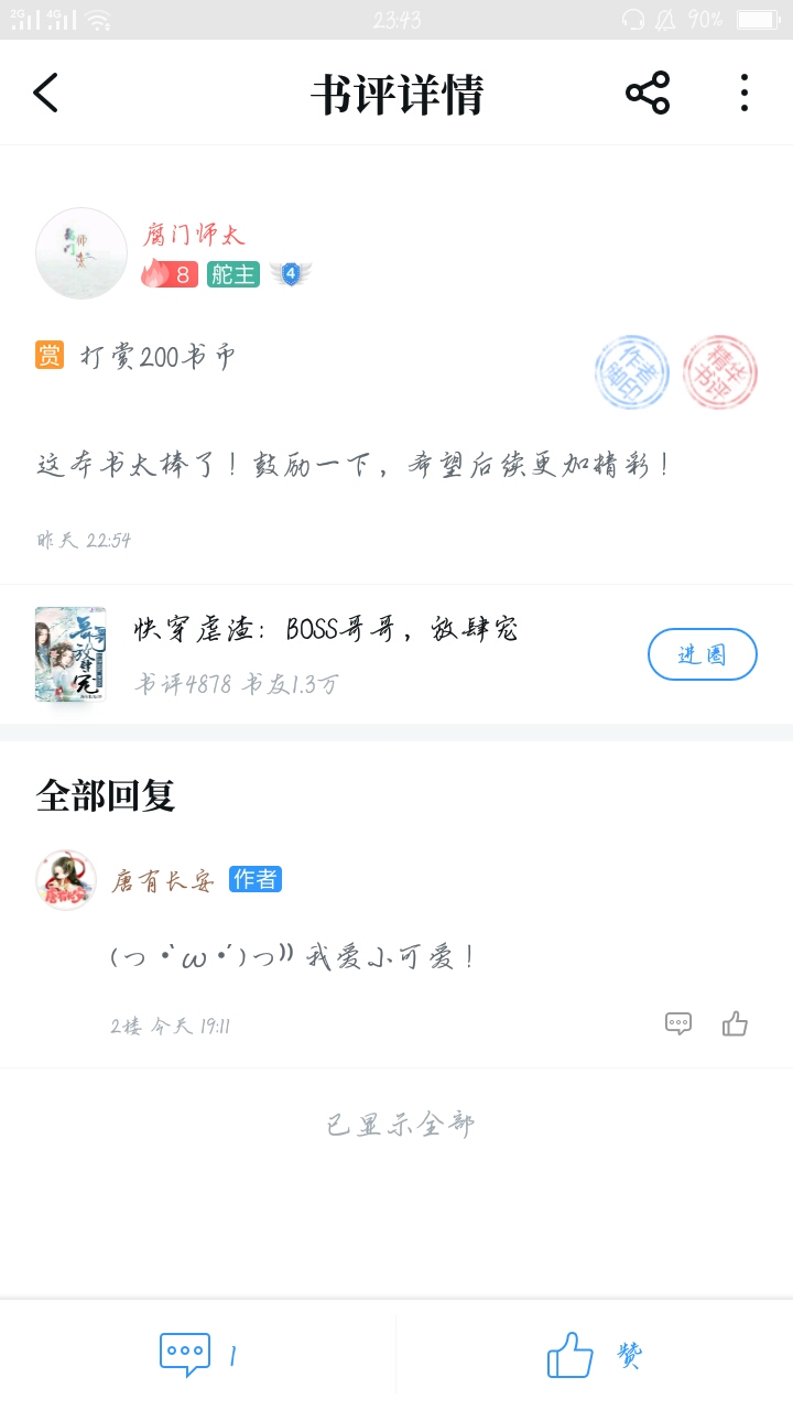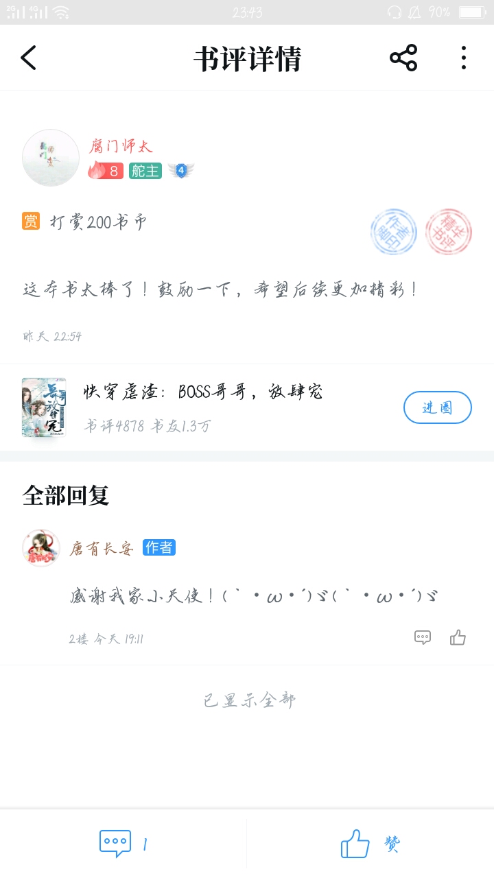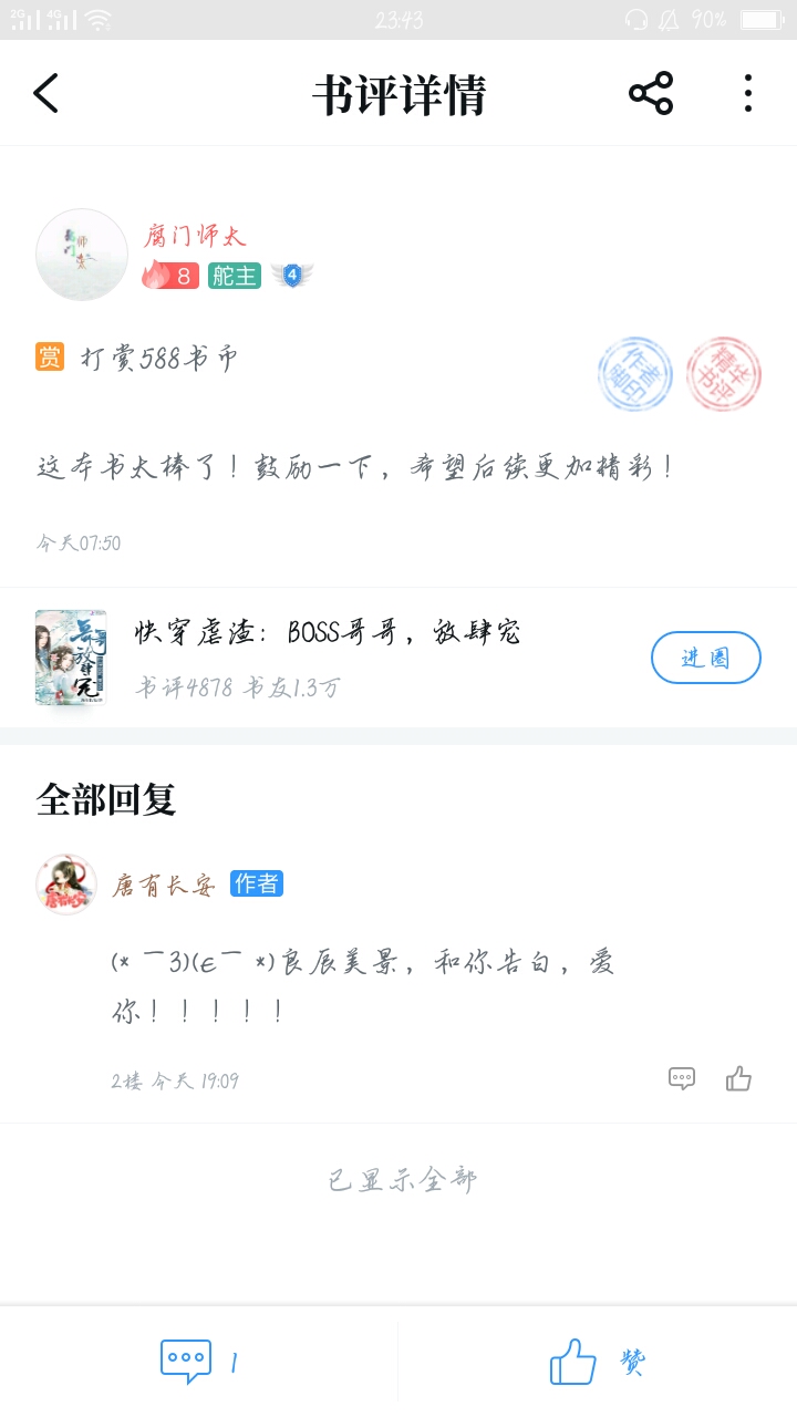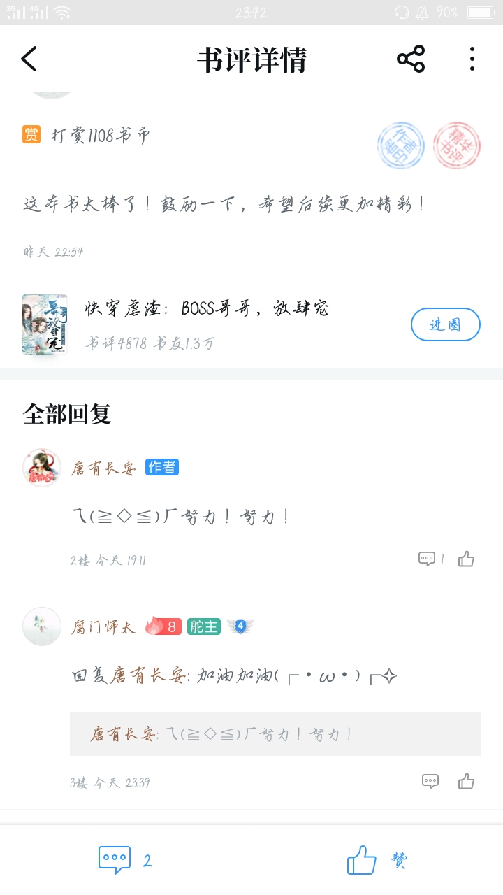 Hmm... I just started reading a big book, To be honest, I really like reading articles about pseudo-brothers and sisters. That's why I found this book, This is one of the reasons why I like it. The first thing that attracted me was the writing style and writing style. What particularly impressed me was the adapted section: "The first thing you say when you get up every day is to ask Ji Yu if he's cool; if you scold him less than once tomorrow, you have to say sorry... Tong Su Tong Su, don't be sad, we are with you. Ji Yu, and Lan Shu'er, they are very scheming!" I have to say, it's really great! Then what I like is Dada himself. After reading the updated chapters. Then in the book club circle, I can see DaDa's enlightenment to fans, that is, DaDa's reply in the title "DaDa, ask you for help", which also gave me a lot of inspiration and gave me very heart-warming answers. So, here are the three reasons above. Damn, you, I'm a fan. I may not be the first fan, but I will definitely not be the last. I may not be able to give you any good opinions, and I am not like some big guys who always give rewards, but I will do my best to give rewards, vote for recommendations, and leave comments every day... As long as Dada doesn't give up, I will definitely grow up with Dada. Maybe one day Dada's book will become a hit. There will be more and more fans and fans, but I will also be silently guarding Da Da in the corner. Every day in the future, whether happy, sad, excited, sad... I and other fans will be with Da Da. If we fail, we start again; if we succeed, we keep trying. No matter what, please believe that we will always accompany and support Dada and be Dada's strongest backing! Today is the first Mid-Autumn Festival that I have spent with Dada. I wish Dada and all the friends who saw this comment: Happy Mid-Autumn Festival! I also wish Dada's new book a hit! I hope to be able to accompany you through every Mid-Autumn Festival and other festivals in the future. I also hope that more and more people will pay attention to and like this book!