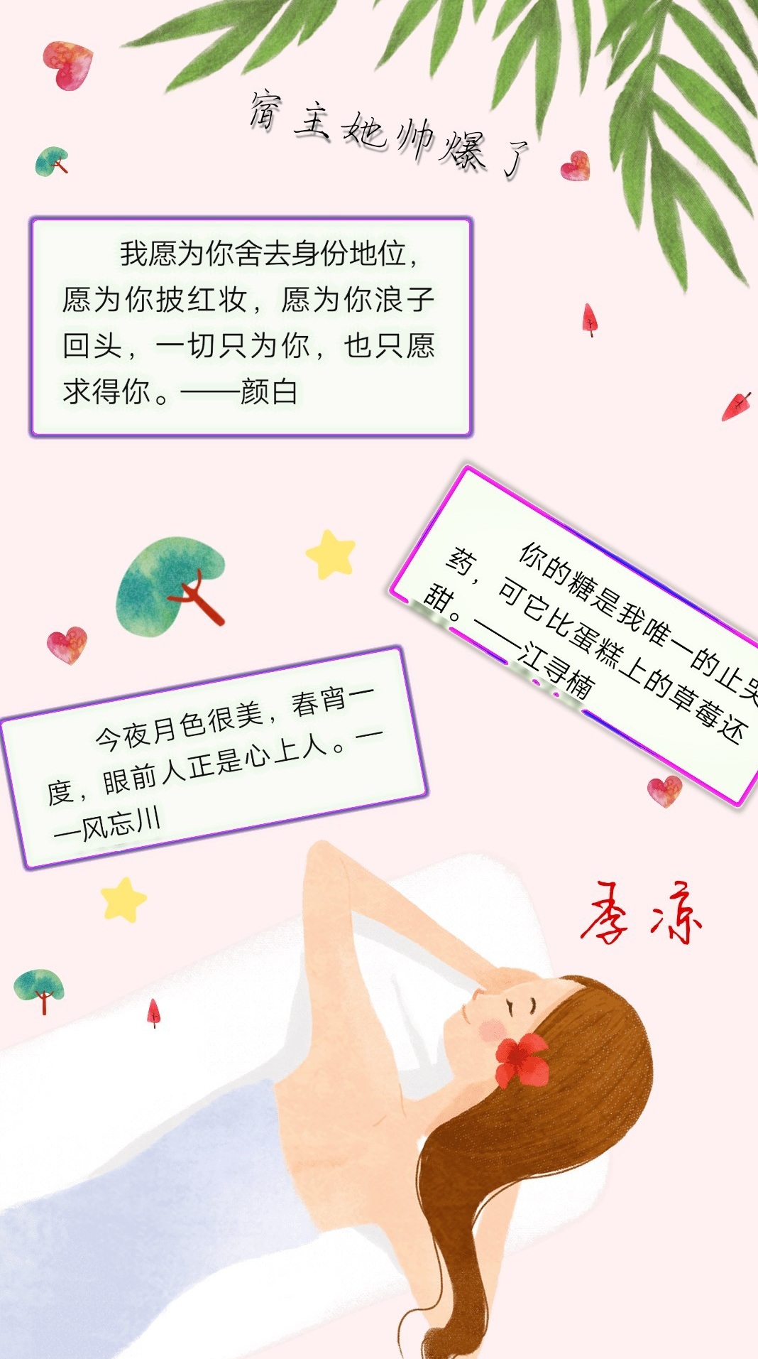 Name: Ji Liang Gender: Female Attribute: Devil sss+ Force value: Grandmaster level sss+ Justice value:? ? ? Blackening value: 0 ~ 100 [It's a famous scene in the world of "My Little Cutie"! ! Everyone must go and watch! ! ! ] Excitement value: proportional to the urge to kill Weapon: Qiu Xue (actually it is Liang Ye's pendant, used to scare people (ಡωಡ)) Appearance: sss+, facial paralysis, both beautiful and handsome, indistinguishable between male and female. Hobbies: Smoking, driving with mission goals (sort of...) Characteristics: Poisonous tongue, super strong working ability! There's no job she can't do! No matter what she does, she has no ups and downs in her heart (so she is a devil...), Her blackening value is erratic, and her forbearance ability is first-rate. Subordinate: system (little system, little thing) Background: (we don't know anything about this) Catchphrase: Ha‖I bought a watch last year‖It's a small thing‖There will be no next time‖ Under the leadership of the foodie system, have you embarked on a positive path? ? ?