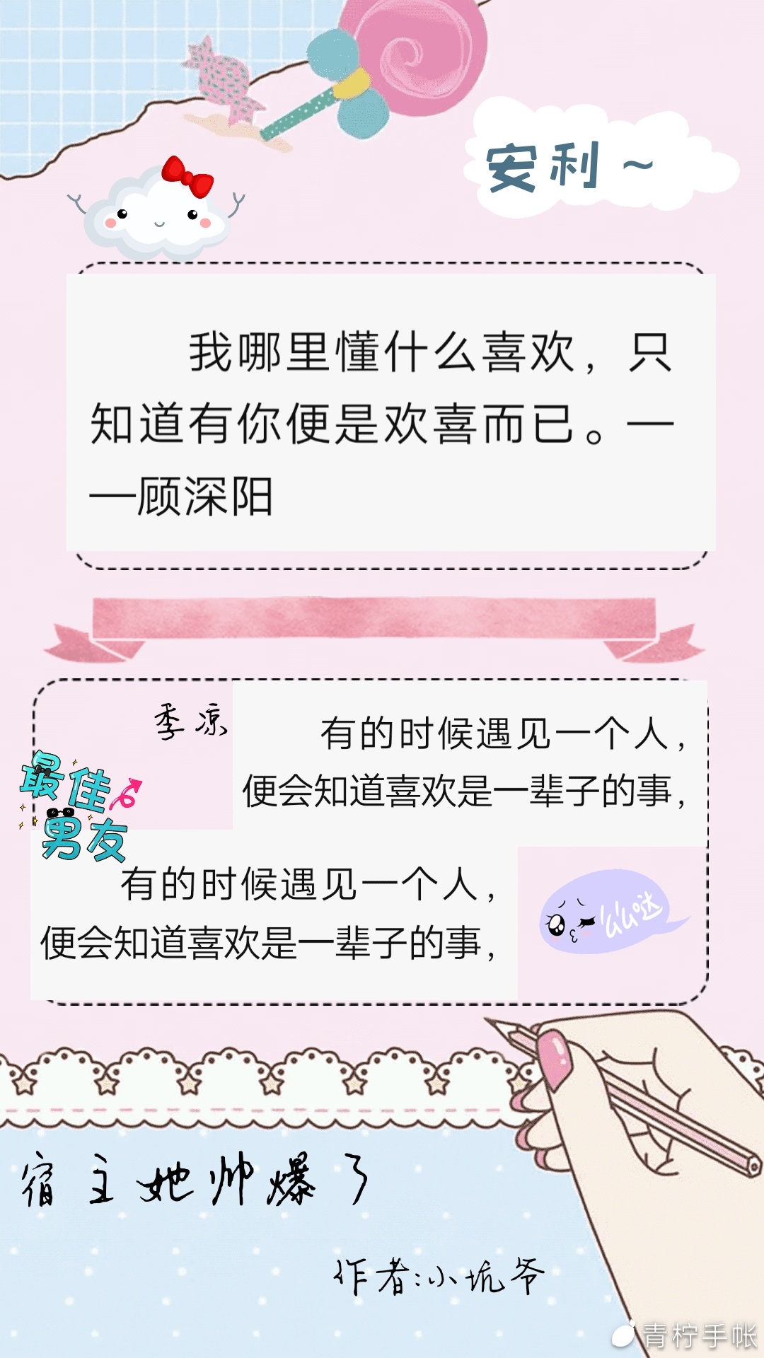 Wow, I just wrote a book review of more than 300 words, but it disappeared without saving it, ah ah ah. Just give me a thumbs up because I'm so pitiful. What follows is what I want to express from the bottom of my heart. As for the book Saosao, I couldn't help but click on it. Let me evaluate this book first. Anyway, it is very good. This book is concise and clear, not sloppy, and overall it makes people feel comfortable. I can't finish it anymore. But it is indeed a very good book, I personally like it very much. There is also an advertisement to be placed. Everyone, please join the Saosao group. The people in it are very friendly and love you. Now that it's down, I'm going to make up the word count. Now I'm going to confess, I love Saosao, I love Ji Liang, and I also love everyone who liked this book review. Next is another piece from my heart, The road of life is very long, let me walk with you. I would like to build a sky of our own with you I want to hold your hand and watch the fragrance of roses in the morning; I want to hold your hand and watch the splendor of shooting stars at night; I want to hold your hand and watch the beauty of the four seasons blossom. As long as you are here, happiness is unlimited. Giving me a million reluctant days is not enough, giving me a lifetime of warm and romantic nights is not enough. When I am with you, I always feel that the world is incomprehensible and will never have an end. Being with you for a lifetime is called the future, and being with someone else is called making do. These are my above-mentioned confessions, for Ji Liang, Xiao Hangkeng and the cuties who liked this comment. Maybe no one has told you that I love you, so I will say I love you today! Come on, the road to the rest of your life is still long. Maybe I won't accompany you to the end, but I will accompany you for a while. I wrote a lot, and some people may not read it to the end, but I still want to say, remember to give this book review a like. Love burning oil and like this video. Love coquettishly and give likes.