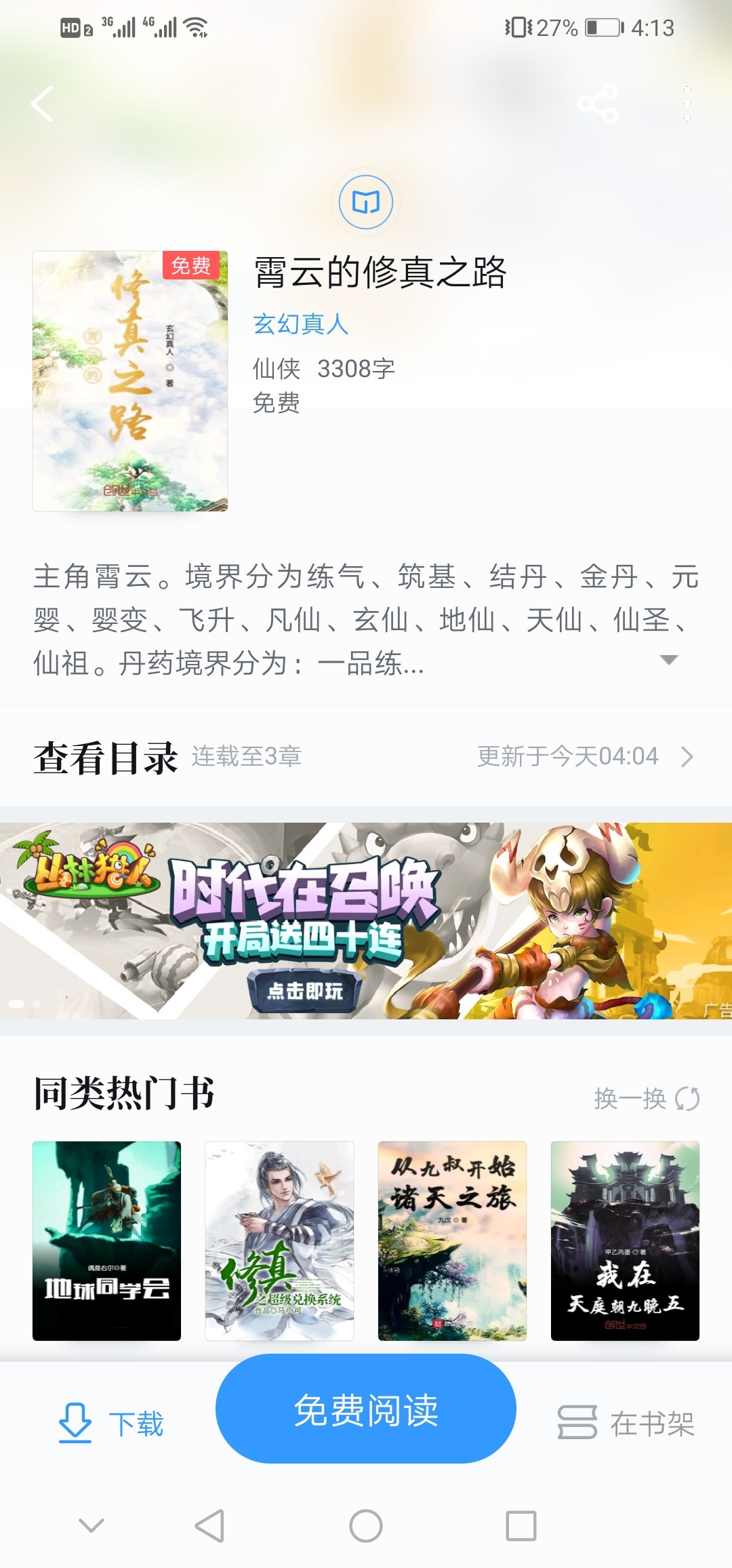 The protagonist Xiaoyun is a humble cultivator. The realms are divided into Qi training, foundation building, elixir formation, golden elixir, Yuanying, Yingbian, ascension, mortal immortal, mysterious immortal, earth immortal, heavenly immortal, immortal saint and immortal ancestor. The realm of elixirs is divided into: first-level pharmacists to twelfth-level alchemists. Medicinal materials are divided into. Grade 1 to 12 medicinal materials.