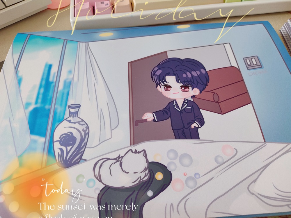 The semi-finished picture is here, the line drawing that has not yet been colored is quietly a bonus for the babies. I later changed some small details, and the coloring is perfect. Qing Bao's picture will not be released for the time being. Youmu are very handsome, sisters, hold on. For posters and color paper arrangements (*∩_∩*), you can follow my space or Weibo to get the latest information on new books... [The copyright of all drawings in the following pictures belongs to the author, please do not use them indiscriminately] The poster of p3p4 is the actual picture, and it was just delivered to me today. I took photos and shared them immediately. P5 Mr. Yu is here, see you around the complete picture. Actual photo of p6 printed signature card.