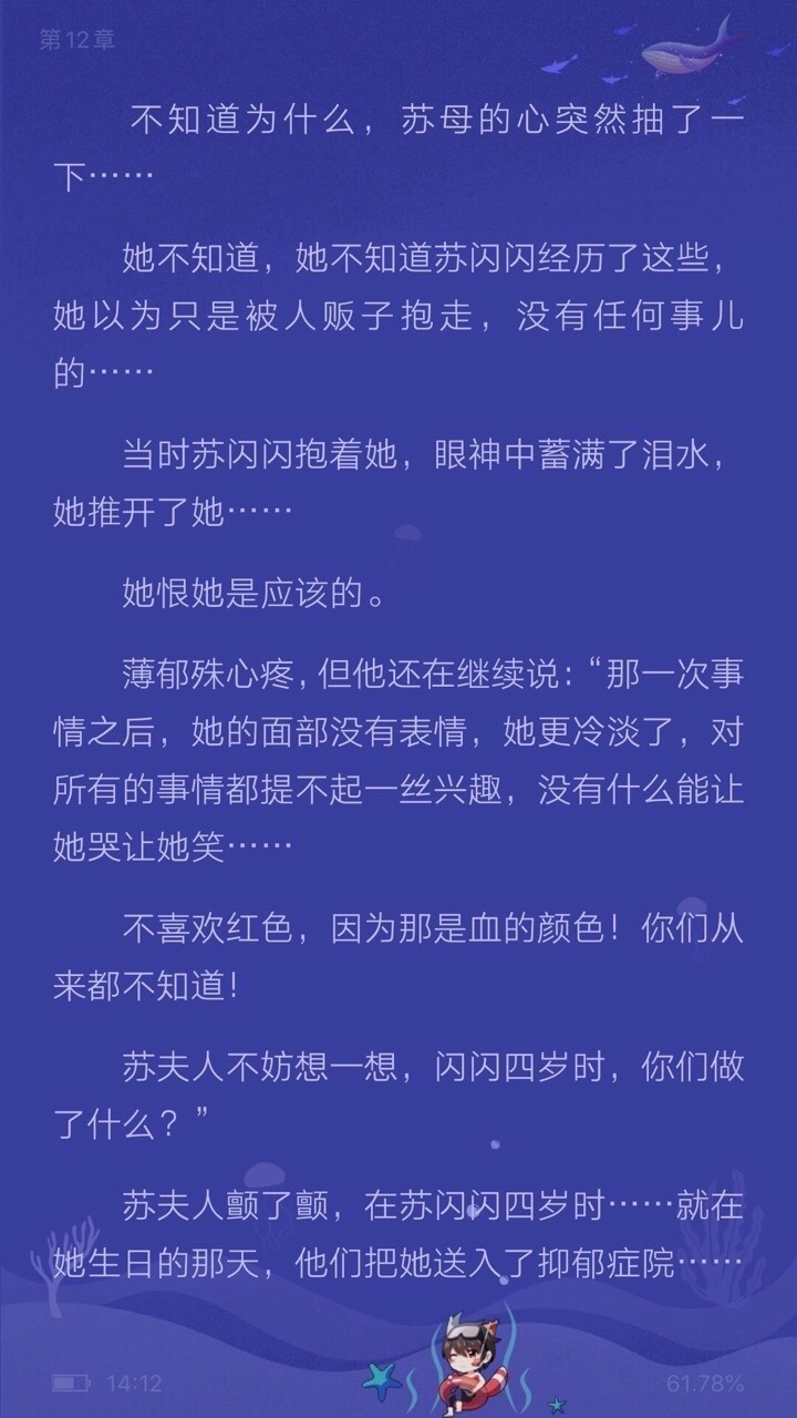 The plot is a bit confusing, but by the last 17 chapters or so, I can almost understand it all. The heroine Su Xingxuan is a girl who has experienced darkness since she was a child. She is very pitiful and pitiful but very strong. The male protagonist is really doting on her. He uses every means to make the heroine finally get rid of the painful memories of her childhood. For Xingxing, she has three most important people in her life. The little brother she met in the depression hospital, the person who promised to marry her when she grew up, the teacher who had been with him for more than ten years, the person who appeared when she was 18 and led her to the light, and they are all the same person, the person who would not marry him. Because of the painful memories of her childhood, the heroine cannot cry or laugh, does not like to talk, is cold, empty, and numb, no matter how others insult her, There was no fluctuation in her heart. In her own words, she felt heartbroken when she first heard these words, but later, she no longer felt it. Not only did she not love someone, she also couldn't hate someone, because she didn't understand what love was at all. When she needed family love the most, not only did she not get the so-called care and worry, she only got endless hurt. But later on, because the male protagonist became optimistic, cheerful, laughing and playful, and gradually came out of those shadows, I was really touched to see that later, after all, Shining is such a good girl, she is so kind, even if everyone in the world treats her with evil, she still repays everyone with kindness. She always says that she is a monster and has no feelings, but she may not even know how kind she is, and she deserves the best. In fact, the male and female protagonists redeem each other. Twinkle is the only light in the male protagonist's heart, and the male protagonist is also the only support for Twinkle to survive. I think Dada's writing is great, because I love reading short stories, but many of them are not good. I think although Dada's writing is a bit out of the ordinary, it is really beautiful and touches people's hearts, so I will still support Dada's next book. Gold will always shine. I believe I am not the only one who knows a thousand-mile horse. Come on Dada ^0^~ (May Shining be happy every day in the future, she deserves all the good things)
