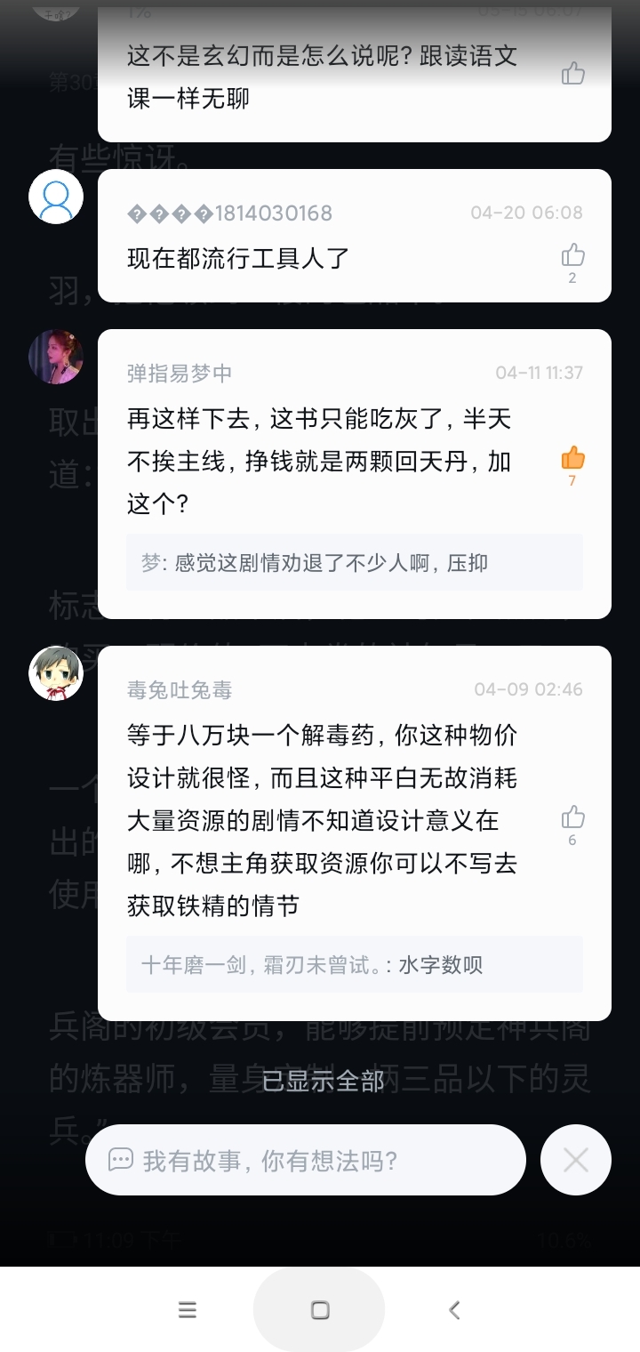 The routine is average, and the protagonist he always likes to bring with him is the little beggar or a woman! If you're afraid that he'll reveal that personal matter, why don't you send him to a town farther away? If you spend some gold coins, you can send the person to another town farther away, but if you give him more money, can't he survive? Then it wouldn't matter even if he died. Moreover, you have already given him money and sent him to another town to live a good life. Later, the little beggar was even injured and was invaded by evil spirits. He was so anxious that he did not hide it at all and appeared in the Shenbing Pavilion with his true colors. The first two said that one should hide one's strength and not expose it, for fear that Yang Xiu would kill someone, and the second two directly exposed it. Is your life more important, or that of that little beggar girl? Can't you put the little beggar in a secret place, hide your identity, and exchange gold coins to recharge to buy medicine for him? Why don't you carry that little girl to the Shenbing Pavilion to sell things without exposing your true identity, and then use the gold coins you sell to buy medicine? I don't know what to think, the first two pictures even said that I need to hide my strength. Do you think after spending a few days with that little beggar girl that her life is more important than yours? You risked your life for him. Oh, I don't know what I want to say. Is it going to be written later that the little beggar girl fell in love with the protagonist? Oh, let's go. Where is the pronunciation written down? Those who have brain problems, please don't troll. I want to discuss the problem. Please say it clearly in my comments and don't troll randomly. And don't say that it's hard for the author to give low stars or something like that. If you don't read well in the comment area, it's just for commenting. If you think it's toxic, you can give it a score. I've written out what you don't see well. If you want to talk about the discussion issues, just say it below my comment. Be strict with your mouth. Chinese people should know how to be polite