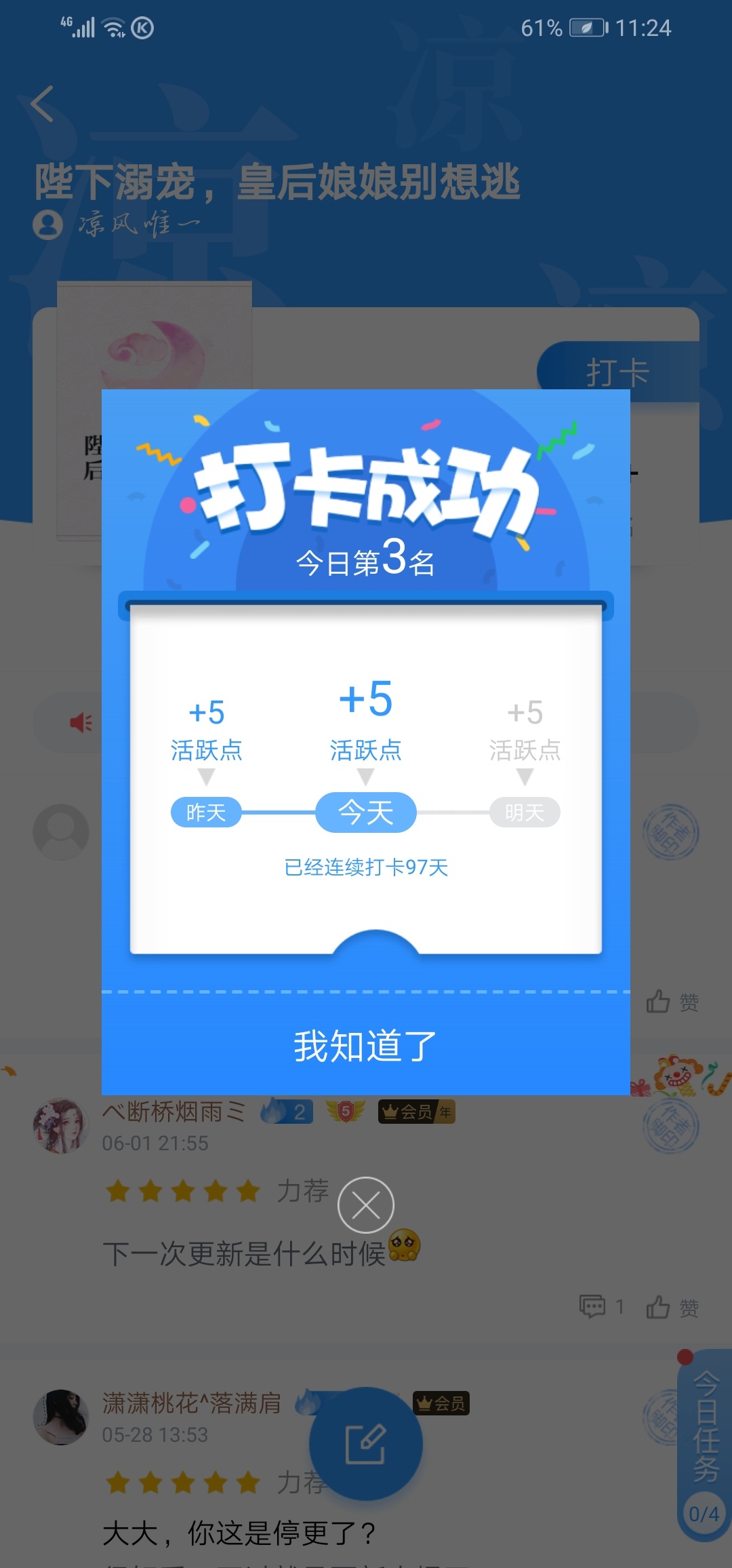 Well, this book is very interesting. The heroine is naughty and cute, and the whole family loves her. The hero also loves her alone. I accidentally discovered this book today. Although it is newly published, I am willing to wait for the author to update it. I hope the author will not make me wait too long. Come on, come on (ง •̀_•́)ง