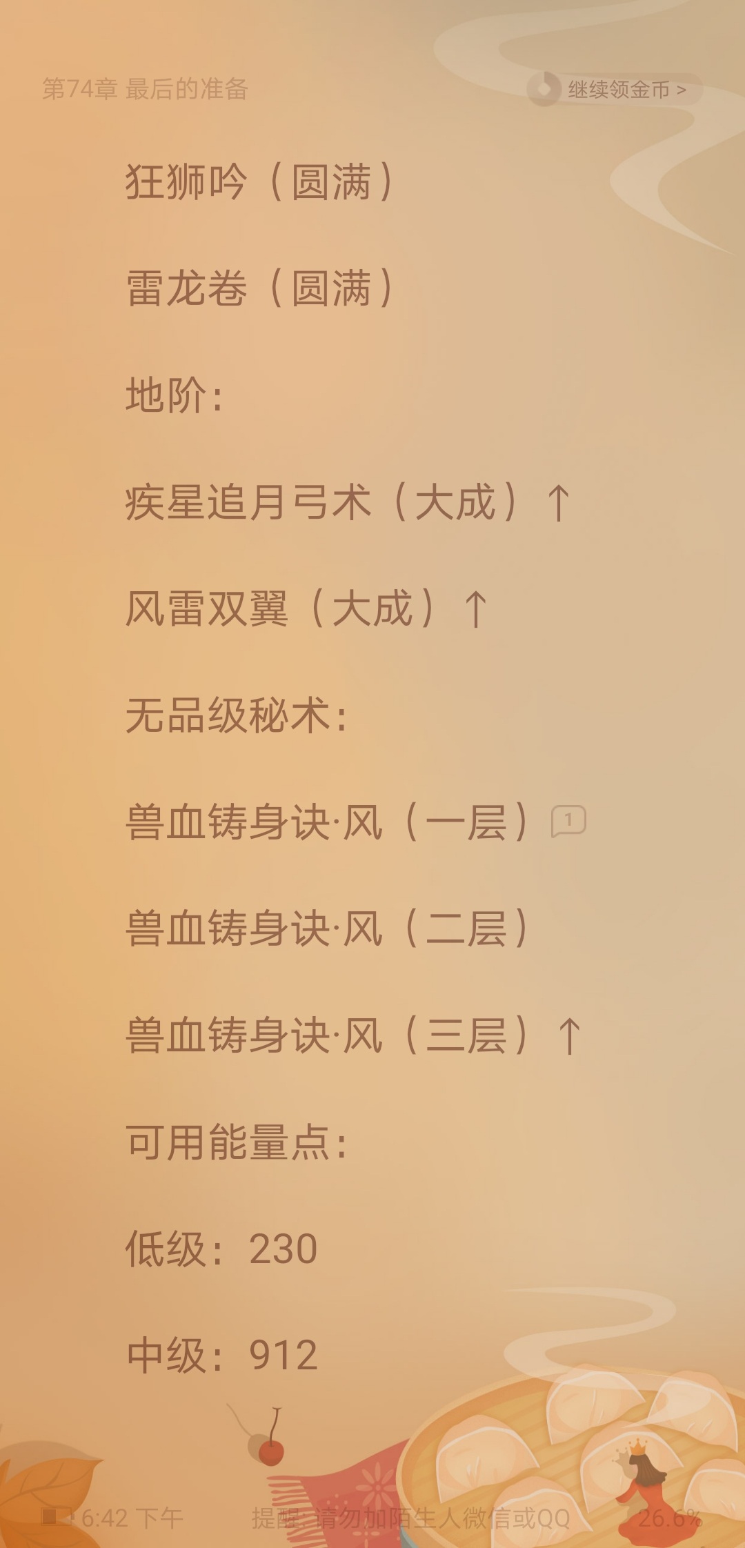 The writing is still very good, but a little watery. As long as I look at my basic information, one-third of the chapter is basic information, and obviously a lot of the basic information does not need to be written down. For example, there is no need to be so detailed in the Beast Blood Body Casting Art. They are all of the same attribute, so why can't they be grouped together? The number of words should be separated. There is also the issue of skills. Since I have already practiced high-level skills, why are the low-level skills still in the basic information skills column? It seems that the Dou Po setting cannot practice multiple skills of the same attribute at the same time. That's all, it's just my personal opinion, but overall I still like it, so give it a try, author.