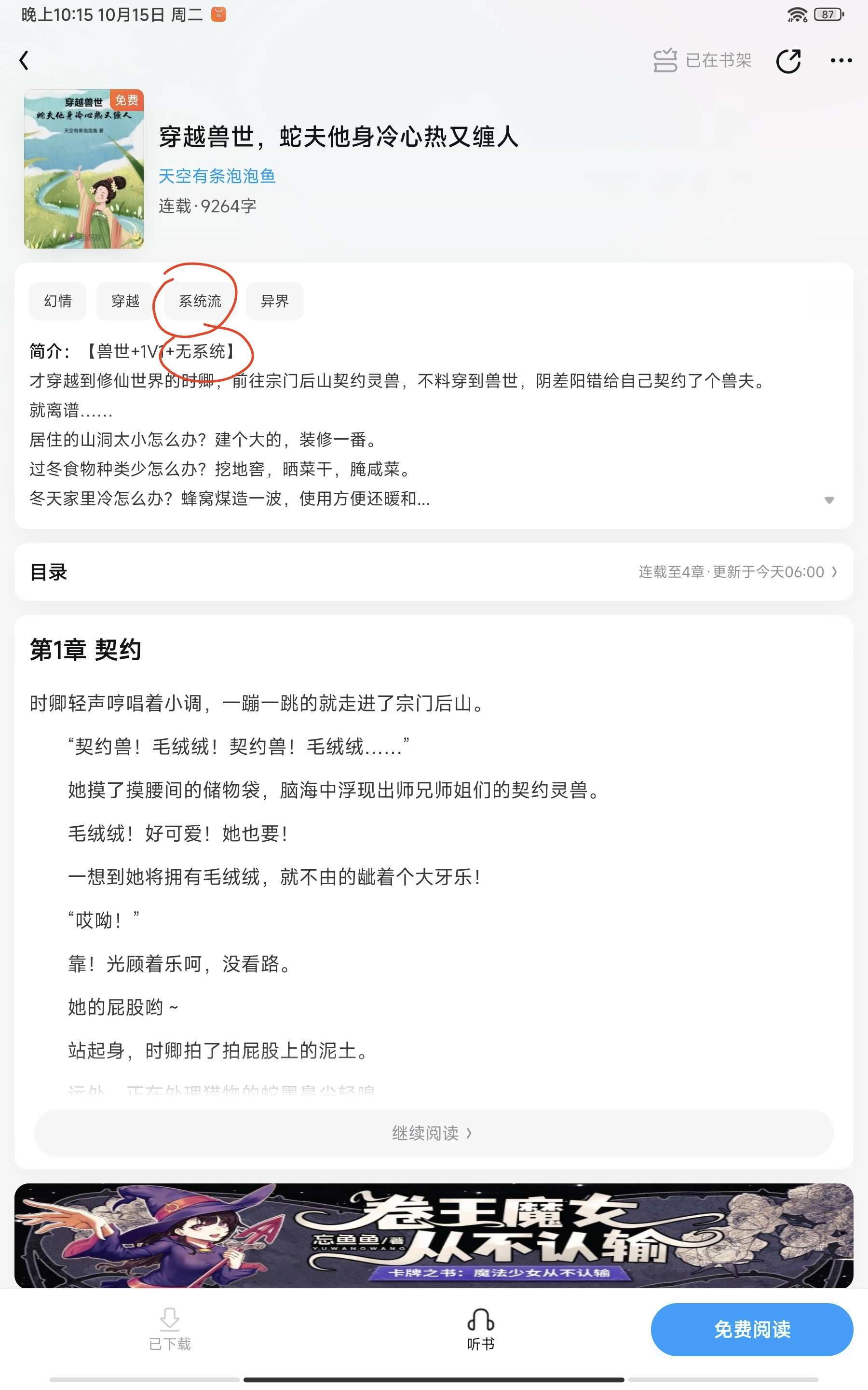 [Beast World+1V1+No System] Shi Qing, who had just traveled to the world of cultivating immortals, went to the back mountain of the sect to contract a spiritual beast. Unexpectedly, he traveled to the world of beasts and contracted a beast husband for himself by some strange combination of circumstances. That's outrageous... What should I do if the cave I live in is too small? Build a big one and decorate it. What to do if there are few types of food for winter? Digging cellars, drying vegetables and making pickles. What should I do if my home is cold in winter? Make a wave with honeycomb briquettes, easy to use and warm. What should I do if there are too many things to do? We are taking in the weak orcs! Work and stay safe! Hey! Shi Qing scratched her head. She just wanted to improve her life, so why did she build a tribe? * Just started! Snake Mo: Female beast! A fragile and delicate troublemaker. Shi Qing: Little book warning! Later! Snake Mo: Qingqing loves me! I love Qingqing~ Shi Qing: Please go out and turn right.