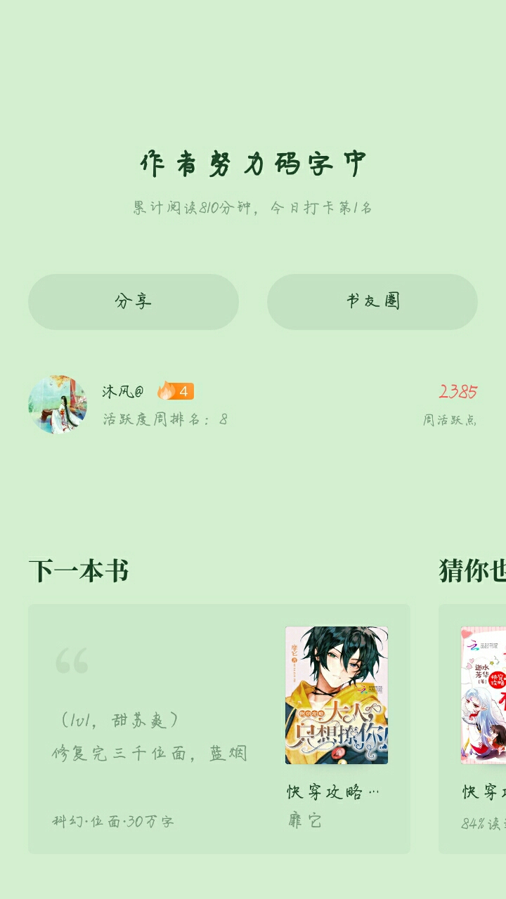 The building stepping activity starts from now (2019.3.1) Until 2019.3.14. Rules: Each cutie must not step on more than ten floors in a row, otherwise the reward will be disqualified. The floors will be counted at 10 o'clock in the evening on March 14, 2019. The cuties who hit the floor will be notified in the group and receive the corresponding rewards. Lucky floors 6, 66, 666...100 Book coins per person Lucky floors 8, 88, 888... One person will be rewarded with 200 book coins Lucky floors 9, 99, 999... One person will be rewarded with 300 book coins Lucky floors 100, 500, 1000... One person will be rewarded with 666 book coins Each person can only receive one reward. If there are duplicates, the highest reward will be selected and the rest will be postponed downwards. Everyone is welcome to participate and thank you for your support and love! The right to interpret this event belongs to the author. If there are loopholes... We'll talk about it later.