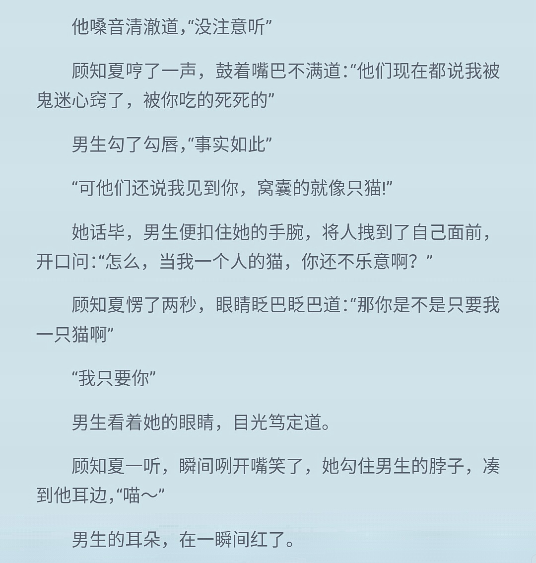 Friday, November 2, 2019 was the day I read about my ex-boyfriend and got to know Grape; On Sunday, January 19, 2020, I finally got my wish and became the administrator of the little sister after having been stalking Tao for a long time. Of course, it was also on this day that I was so excited that I sent a long review notification, saying that the long review will appear before the end of the winter vacation🙈Xiao Liu'er, who was afraid of being slapped in the face, saw Tao Tao's leave request today saying that the finale will be completed within a week, and hurriedly started to prepare for the long review... 👇👇👇 104 Ideas, ** reward records, ** comments, *** fan value, 17 days of check-in (cough, because we have a holiday on the 10th~)... These are all manifestations of my love for grapes. I regret that I didn't get to know Putao earlier, but it doesn't matter - Putao, as long as you keep writing stories, I will accompany you for as long as you want💛💛As long as you don't dislike it, I will always be your administrator Xiao Liuer~~ (There is a pitfall here😏) At the same time, I also sincerely hope that Xia Xia will smash the bouquet on Pu Tuo's face during her wedding, making Pu Tuo realize that if she doesn't get her senior brother quickly, not to mention God's will, even her own daughter will not tolerate it! ! 👇👇👇 Gu Zhixia is a girl who is willful, precocious, and courageous. She fights and scolds, skips classes and climbs walls, falls in love and leaves home early... She has done almost all the things that a bad girl would do as a teenager. But who said that bad girls are all bad, we Xia Xia are not. She can fight bravely, she can make positive changes, and she can persevere - for that, the beauty of the world. I can't forget the leg she broke when she jumped out of the devil's cave, and I can't forget her encounter with the God of Death at the hands of 👿. She had an unreasonable father and suffered a lot in a place that was supposed to be warm and harmonious. But luckily, her biological mother gave her a modest city, an uninhibited Yue Ge, and a mature Han Yue. 👇👇👇 He is the aloof school bully Xicheng, and he is the cruel school bully Han Yue, but his favorite identity is that of a man named Gu Zhixia. When I was fifteen or sixteen, I was pestered by a girl in various ways, and I was ruined for the rest of my life. She dragged him out of the abyss and sent him to hell. From the top student to the top student in school, just because of her abandonment. The reason why Brother Yue is Brother Yue in my heart, and the reason why he is the man that Xia Xia likes, is because... How can I not love such a boy! ! --"I am against puppy love, but I am not against the object of puppy love being her." --"Like all clichéd stories, she broke into my life and opened the only window for my life." --"After she left, my life was indeed very bad, but it was strange. While I blamed her, I felt that she would definitely come back." 👉👉👉 "But for such a long time, I am aware of all my indulgences. I know what I am doing. If she does not come back, I will degenerate, but I will not continue to degenerate. Because I have to make myself good and then go find her." I fall because she is worthy; I cheer up because only in this way can I be worthy of her shining💛💛💛 When Brother Yue added Xia Xia on WeChat again, he noticed that Xia Xia's WeChat nickname remained the same - "his cat" Arrogance is towards others, I am just your cute little kitten~~