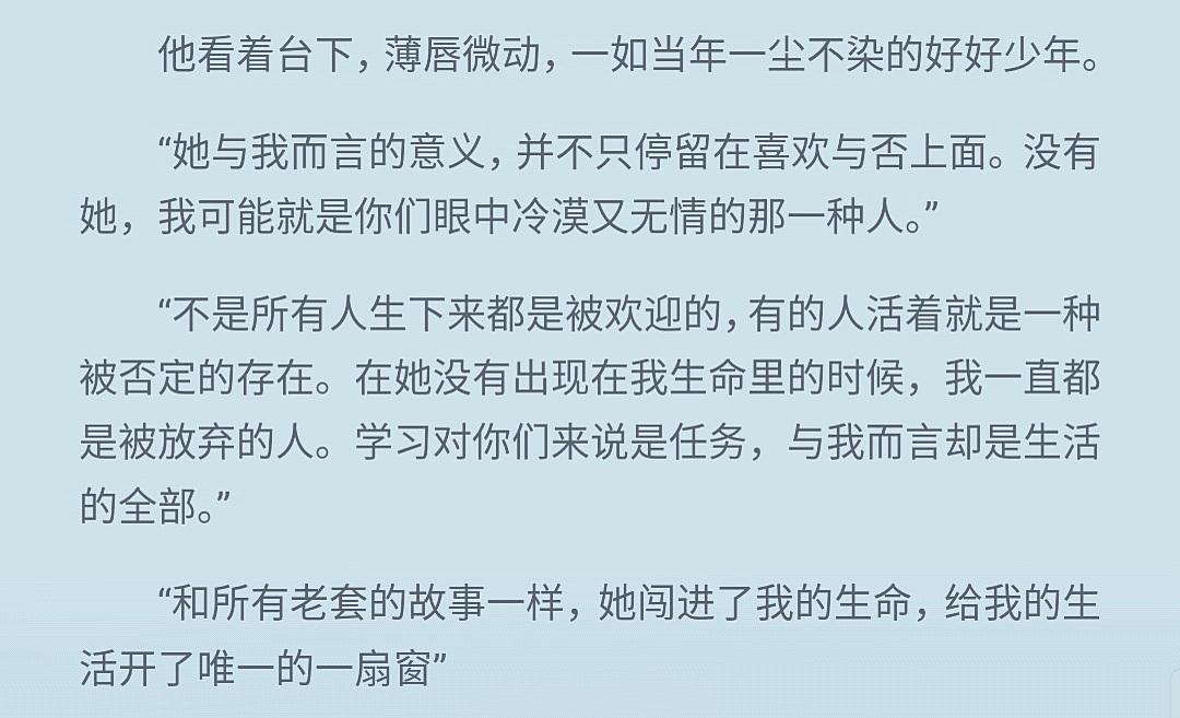 1. Cheng Ting didn't fall in love with Qin Nuan only after she left He couldn't express it, and the Mo family lost my sister Nuan. It's not like "you only know you fell in love with her after you lost her." It's okay to scold him, but don't scold him wrongly; 2. The Mo family is kind to Cheng Ting, but Cheng Ting has not broken up with them. This is a fact. You can't say that just because the Mo family has Taibailian, they just send people to another beautiful world, right? (Of course, I also look forward to a big death for the Mo family, so big that Cheng Ting can just ignore them forever.) So, don't scold the dog man for being too cruel. What can he do? He is also very desperate... 3. My sister Nuan did not hang on Qi Chuan. Thank you She had never felt Qi Chuan's slightest affection for her before. When she knew the truth, she was shocked but didn't believe it. After Qi Chuan confirmed it, she said it was impossible. The following is an excerpt from the original text ☞ "I don't know what to say." Qin Nuan pursed her lips, her expression was in the dark, and she couldn't see clearly, "It's your freedom to like who you want, and I can't interfere with it. I can only tell you that I can't respond to your feelings for me." "There are many girls better than me, so there is no need to waste time on a married person like me." ☜ Take a good look at it yourself 4. Back to the main text, let me talk about Xia Xia's various shameless high school pursuits of Brother Yue. In the past, many people who didn't understand the reason directly scolded Xia Xia for licking dogs and saying it was disgusting. I'm just confused. Although Brother Yue has a very harsh tone and fierce attitude, you still can't see that he likes or cares about him from a God's perspective? Since the man doesn't hate the woman very much, and even likes her, then why can't the woman use the way they get along to recover after the breakup (the key breakup is still forced)? Xia Xia was originally a very soft girl, and this was how the two of them got along. When she made a mistake, she felt guilty, Brother Yue got angry, and Xia Xia would act coquettishly and coquettishly. Take ten thousand steps back and put it simply, Does Xia Xia lick the dog? Lick. Is Xia Xia disgusting? No, not at all. In my opinion, only if Party A has no feelings for Party B and doesn't care at all, and Party B still looks at Party A with a beauty filter, regardless of the other party's insults and so on, and insists on liking Party A without hesitation, then it is called disgusting dog licking Hey, the bad attitude here is not directed at anyone. I'm sorry. Welcome our dear Miss Qianci to become the first disciplinary assistant of this book~~