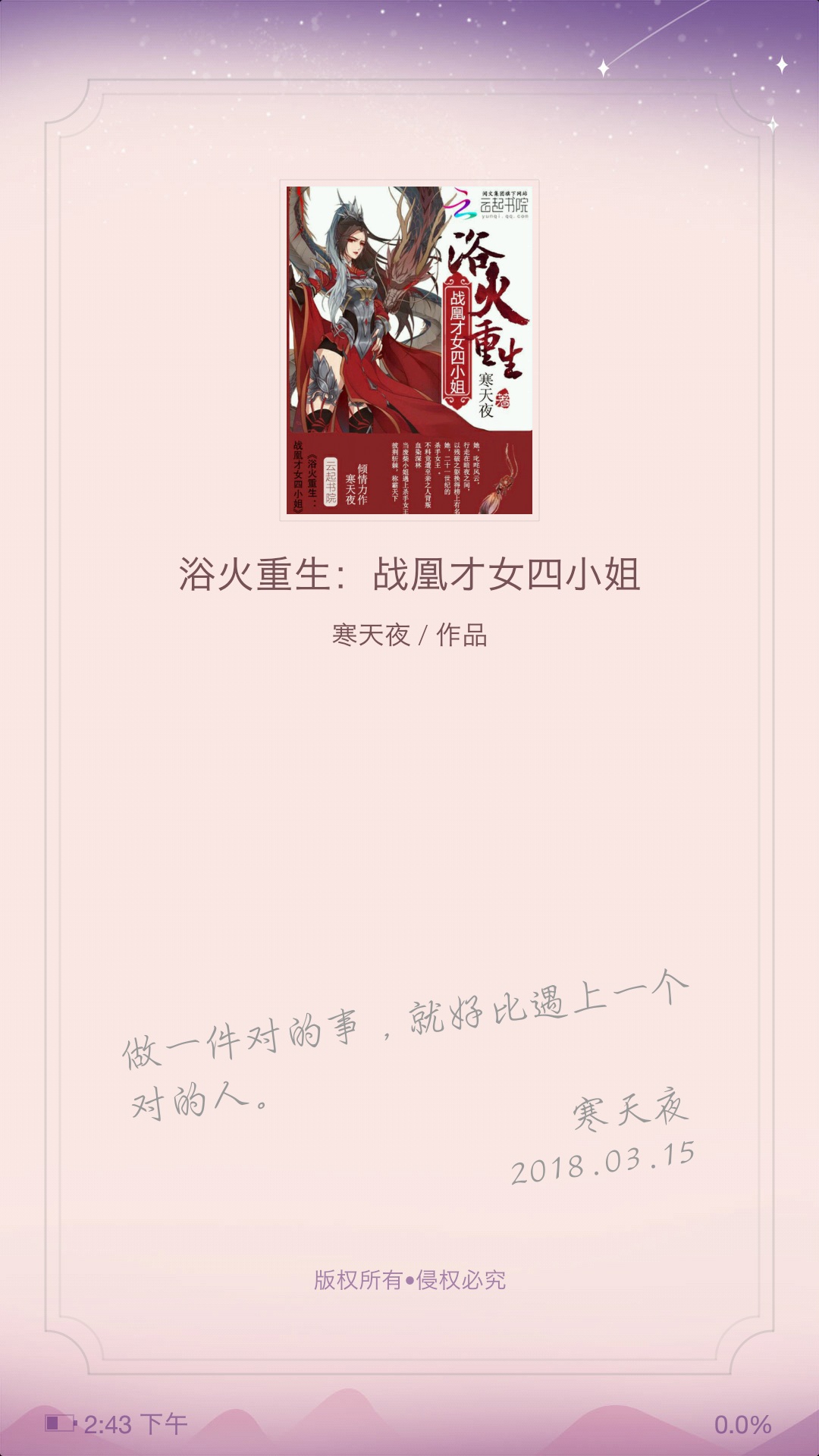 He said that it was the first time he watched a strong female character and he thought it would be difficult to watch, but the author's writing style is really very good and he liked it very much. Please continue to work hard! I will keep chasing it!
