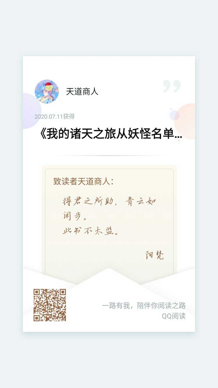 Let me talk about the writing first. I have a very good grasp of the writing. Then, as for the outline, I can see a little bit about it so far. As a novel of infinite flow, it is not bad at all. Then there is a little suggestion. As a Mugenliu novel, if you write a harem, I don't mind. You just don't have so many female protagonists, just three or four. If you write more, you won't be able to take care of it. And there is another point that is not easy to take back. I feel that there are two worlds in the writing so far, one monster list and one person. I personally feel that the part about the Qin Kingdom in the monster list is particularly well-scaled and well grasped. Another point is to ask the author when he will return, and the time when he returns to the monster list. Five-star praise Finally, let me make an advertisement. I am the director of a mental hospital. If anyone has a brain problem or something, you can contact me (funny face)😇😇😇
