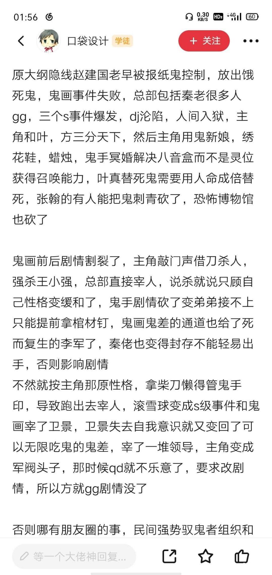 The writing is very nice and better than Ghost Phase Wujian. Personally, I feel that the Mysterious Resurrection fanfics are good-looking except Wujian and Forgetting. The others are all pretentious storylines. Only Wujian and Forgetting have something of their own with the help of the world view, but I personally feel that Forgetting is better-looking than Ghost Phase.