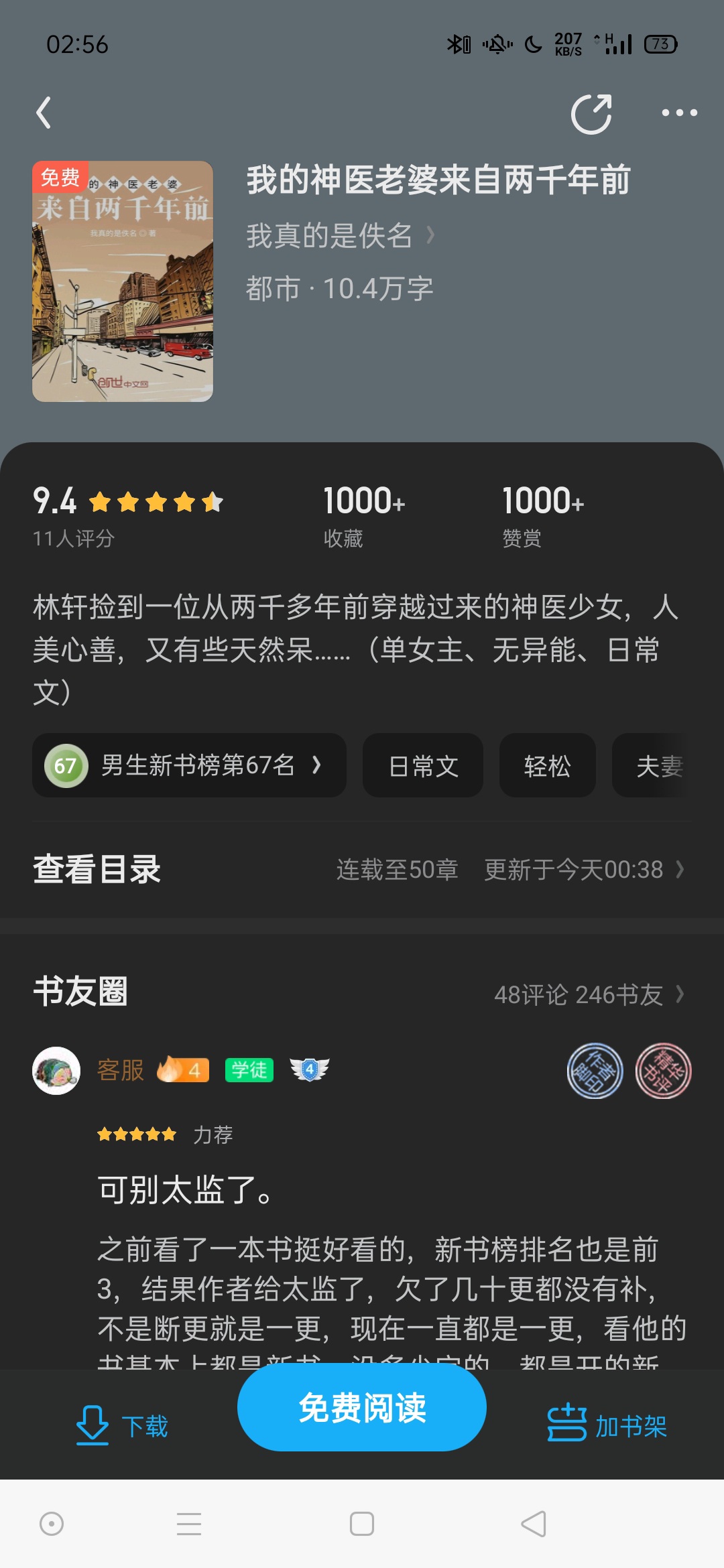 The subject matter is novel, and society is described from an ordinary perspective. There is no current sign-in flow, and the protagonist is not a person who relies on his reputation. I feel that it can be read to adjust the taste. However, there are too many emotional scenes, and marriage is discussed every other chapter. It is too frequent. In fact, you can write more stories about bringing guests, and don't focus too much on emotional scenes.