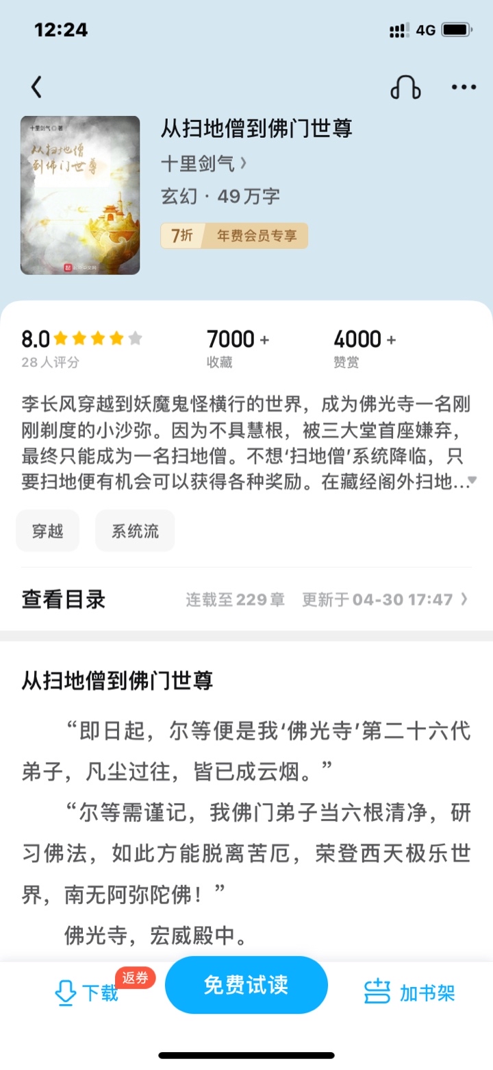 The title of this book is also called "The Beginning Starts with the Shaolin Sweeping Monk"! This world is a world of high-level martial arts immortals and Buddhas, with ninth-level martial arts, first-level martial arts masters, and above that, the martial arts grand master. The great martial arts master is transcendent, his fists shatter mountains and rivers, and his palms shock the world. Tang Jin was sent to the Shaolin Temple by his family to avoid disaster. He worked as a sweeper in the Shaolin Temple and activated the sign-in system. In the Sutra Pavilion, sign in for the seventy-two unique skills of Shaolin. In front of the golden statue of Buddha, sign in the Tathagata Palm. Group number: 688--431--296, everyone is welcome to join. . . . . . It feels good to sign in, and it feels good to keep signing in! Unknowingly, Tang Jin became a martial arts master and a Buddhist holy monk. At that time, the evil master, the evil king, led a group of demons to Shaolin, intending to wash out Shaolin with blood and burn down the Shaolin Temple. Tang Jin threw away the broom and walked towards the evil king unkindly. . . . . .