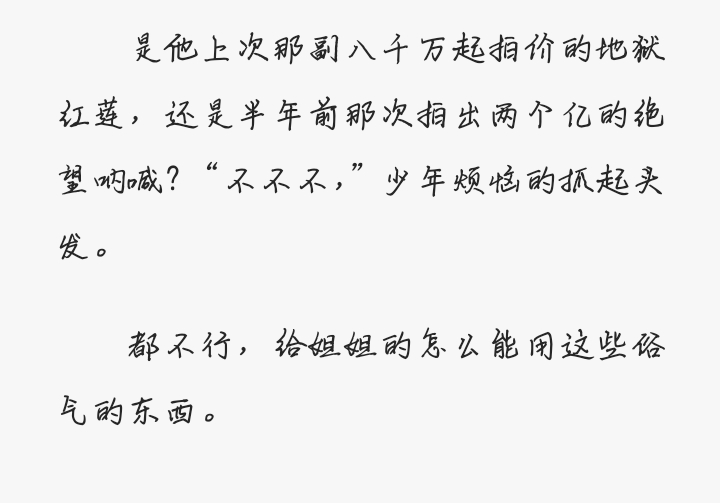 Han Shenji really loves Shi Badi very much. Otherwise, such a high-minded person would now speak with a self-deprecating tone, and he broke many of his principles when he was with Shi Badi. He was always meticulous and could walk barefoot. On the way, he was obviously so angry that time on the street, but he still hesitated because of Shi Bao's look in his eyes, giving Shi Bao opportunities again and again. It can be seen that the aloof God finally moved the emotion that he should not have moved, and he was out of control from then on.
