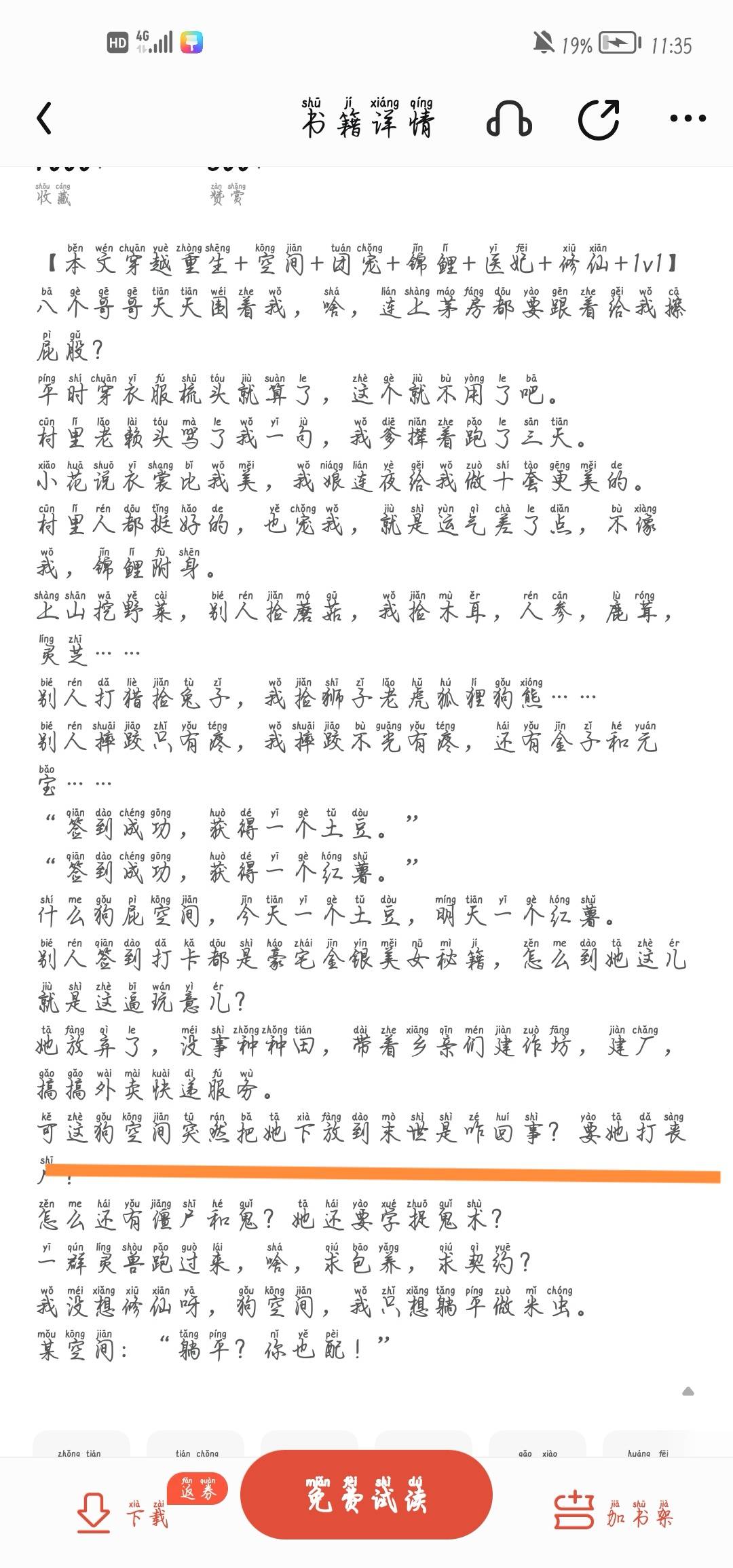 [This article travels through rebirth+space+group pet+koi+medical concubine+cultivation+1v1] Eight brothers surround me every day. Why, even when I go to the latrine, they have to wipe my butt? Just put on clothes and comb your hair, but you don't need to do this. The old man in the village scolded me, and my father chased me away for three days. Xiaohua said that the clothes were more beautiful than mine, so my mother made me ten more beautiful ones overnight. The people in the village are very nice and dote on me, but I am a little unlucky, unlike me, who is possessed by a koi carp. I went up the mountain to dig wild vegetables, while others picked mushrooms, I picked fungus, ginseng, deer antlers, Ganoderma lucidum... Others hunt and pick up rabbits, but I pick up lions, tigers, foxes, dogs and bears... When others fall, they only feel pain. When I fall, I feel not only pain, but also gold and ingots... "Sign in successfully and get a potato." "Sign in successfully and get a sweet potato." What bullshit space? One potato today, one sweet potato tomorrow. When others check in and check in, they all have secrets about mansions, gold, silver, and beauties. Why is it that when she comes here, she is like this? She gave up and had nothing to do but farm. She led her fellow villagers to build workshops, build factories, and engage in takeout and express delivery services. But what happened to this dog dimension that suddenly sent her to the end of the world? Want her to fight zombies? Why are there still zombies and ghosts? Does she want to learn ghost hunting? A group of spiritual beasts came over, asking for support or a contract? I don't want to become an immortal, it's a dog dimension, I just want to lie down and be a rice bug. A certain space: "Lie down? You deserve it too!"