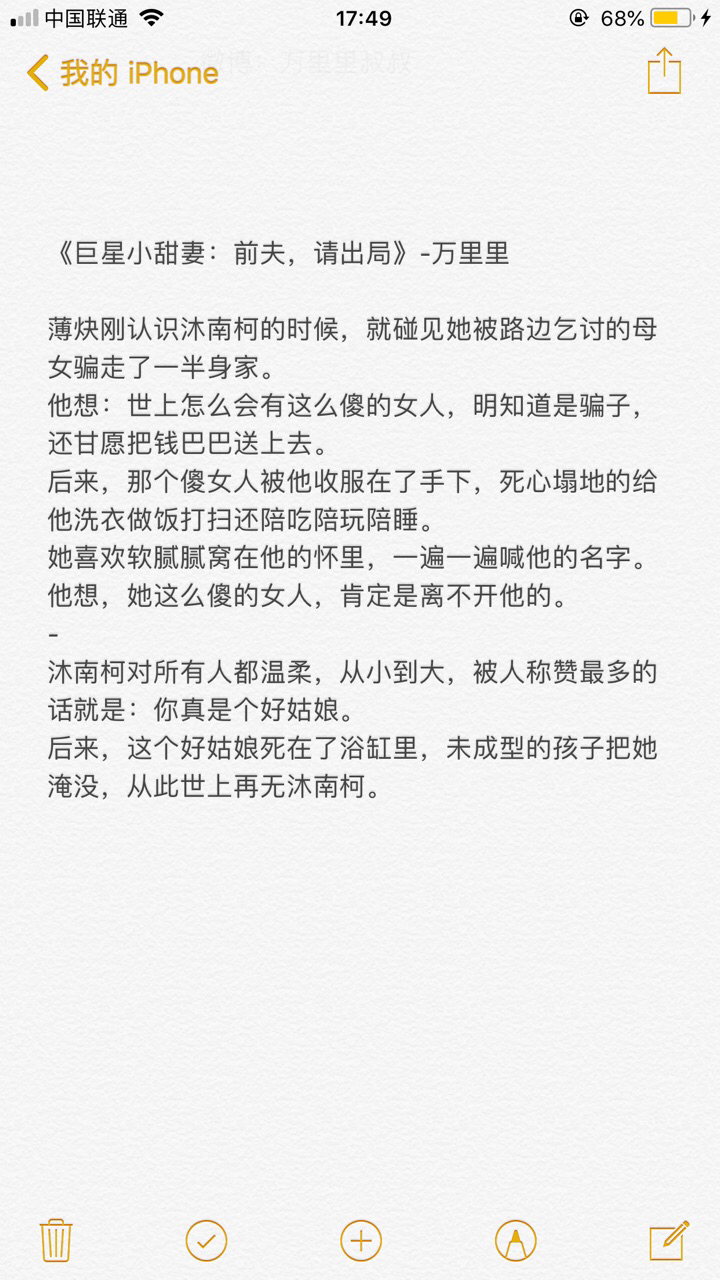 How long have I known you? It's been about two years. Two years is neither long nor short. Thinking back on every day and night I spent waiting for you to renew me, it feels half bitter and half sweet. In just two years, I witnessed the beautiful and sad love of every character in your novel. I still remember reading your first novel, The 99th Divorce. Which character in it impressed me the most? That must be Yulili. When I didn't know her at first, I thought she was not a good person, but as I read more and more, I realized that this girl also has a story that makes people cry... This girl dared to love and hate, and was decisive in doing things. But she was always indecisive towards him, Ou Ming, and she couldn't forget her and it was hard to forget. Um? If I ask who Ou Ming is, I really think he is very unreasonable! Maybe, that's how rich people are, always playing with other people's feelings wantonly, but unexpectedly, they get deeper and deeper into it, and when they finally want to redeem themselves, they end up... Fortunately, they were together in the end, but probably only those who have experienced it will know the pain in this period. Now, friends who are interested can also read this book. As for the second novel, the male protagonist Mu Xichen, nicknamed Dasuo~ I heard that he is your favorite male protagonist among all the novels you have written. He looks dark on the outside but is sullen on the inside, and his physical strength is scary (quietly). Personally, I think Dasuo is really cute and sultry. Fortunately, his emotional intelligence is online. Otherwise, how long would it take for my wife to chase her and get it~ Getting to the point! Knock on the blackboard Knock on the blackboard! Of course it's the third novel now~ The heroine Tang Wu/Shi Mei and the male pig trotter Shi Lingyan, one is fake and silly, and the other is not skinny (because she is a sinister type). I still remember the first sentence at the beginning of the novel: "Shi Lingyan has two things that he regrets deeply in his life. First: When Tang Wu died, he was thousands of miles away. Second: Divorced Shi Mei. " From here we can analyze that Tang Wu did not die because of Shi Lingyan, but why did she see his face when she died? This is a bit incredible... Personal guess, 1. Maybe someone imitated Shi Lingyan's face and then killed Tang Wu? 2. Tang Wu had a hallucination at the moment of death. 3. If you really want to know, you should ask your stepmother. This is a question worth pondering. I have to say that Shi Mei is really naughty. She originally wanted to cover him up with a pillow in the middle of the night while he was sleeping, but she refused. Instead, she held her hand tightly. When she got up the next day, when Shi Ling Yan saw the saliva stains on his chest, his face turned black. Then, while he was taking a shower in the bathroom, he turned on someone else's computer. It happened that the company requested a video conference at this time, and he deliberately called me husband in front of so many people. My husband screamed so sweetly~~ Oh my god, he was so cute, it made me laugh to death. In fact, from the bottom of my heart, I still hope that the two of them can get together soon. We will laugh when they are funny, but if they are really abusive, I think I will really cry. Falling in love is not easy, and now they have to kill each other... However, the process should still be very fun, and I am really looking forward to the subsequent plot~ Finally, I wish this book will continue to flourish! Sneak away and fly! So, Uncle Wanlili, do I have the honor to hold your hand and accompany you through this journey?