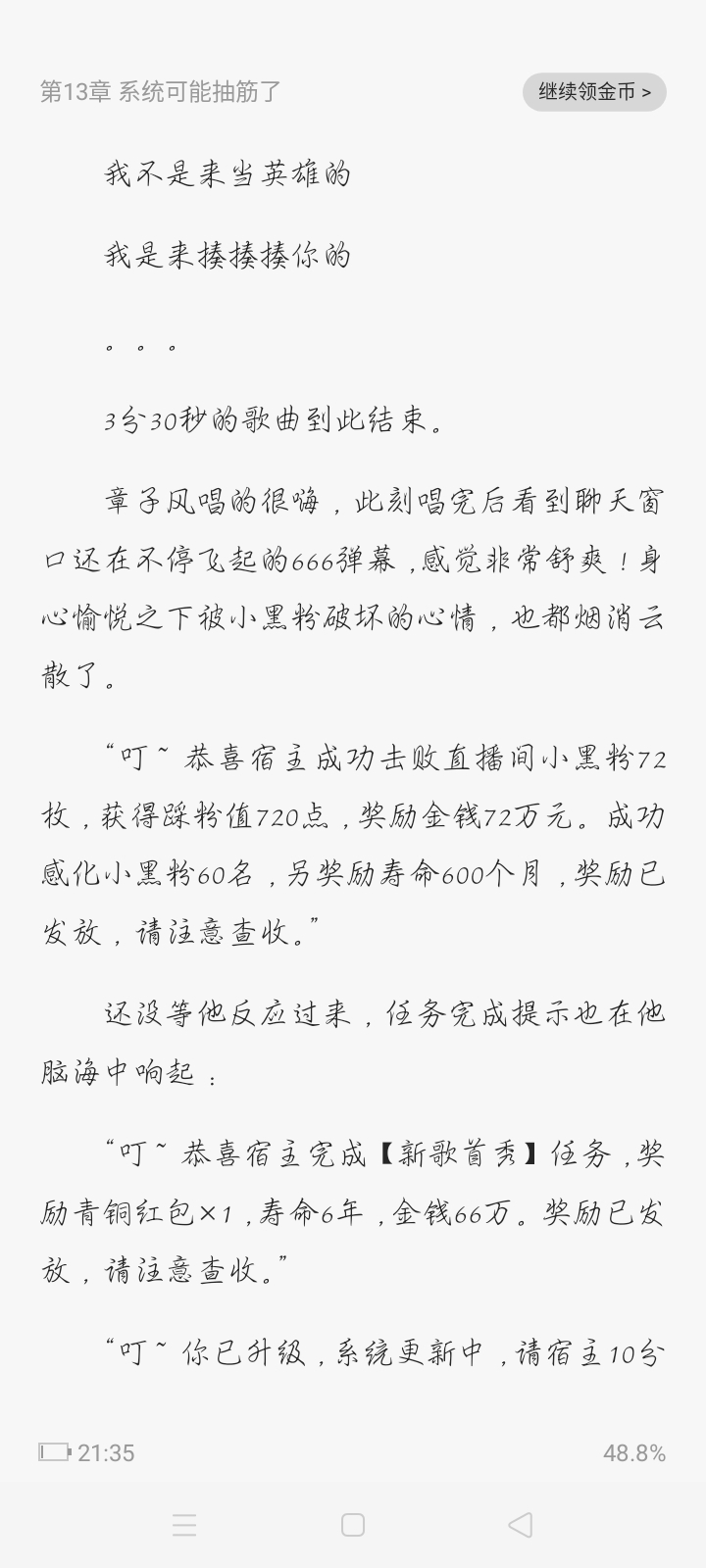 Zhang Zifeng traveled through time, and the system forced him to pick up trash during the day and pick up customers at night - to do live broadcasts. He felt hopeless... Huh? --This anchor is a bit arrogant. He is rude to his fans? I giao--this anchor is very hateful. While others play with skills with guns and guns, he flirts with my sister and shows off to eat chicken; Damn it! - This anchor deserves a beating, he throws the blame after finishing cooking... Others have a lot of fans when doing live broadcasts, so why are there so many little black fans in my live broadcast room who refuse to leave? Zhang Zifeng got angry: "Little black fans in front of me, don't run away, let me beat you to death with a frying pan." "Ding~ Congratulations on defeating the little black fan. The reward is 1 year of life and 9 cash..."