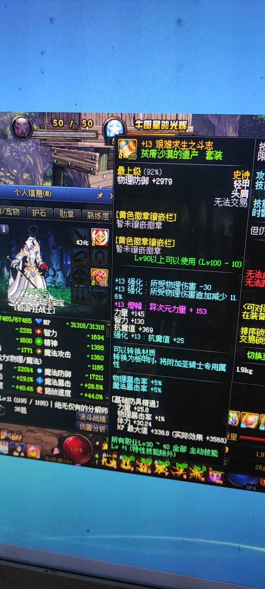 The equipment I used when I got out of the trap during the Chinese New Year. I got out of the trap passively because of the epidemic (I couldn't go to the Internet cafe). If I go now, I probably won't be able to catch up with others' level 100 myths. I won't play anymore and will keep it as a souvenir.