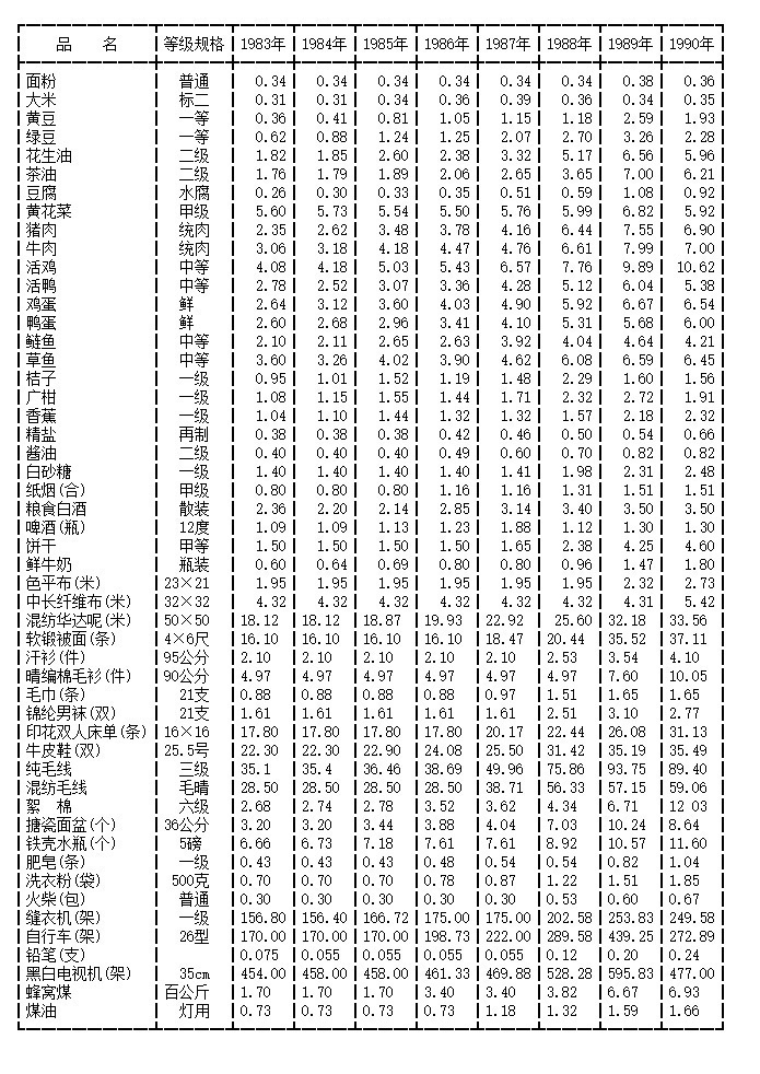 Prices in the 1990s.
