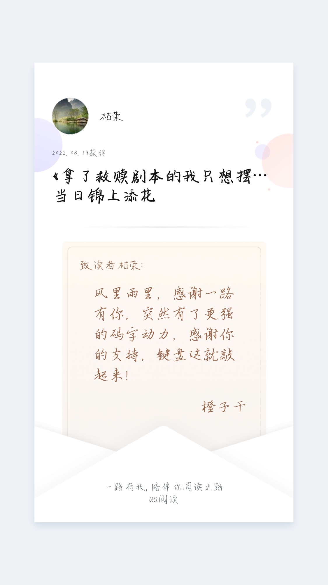 It's great to read. It's different from the novels I've read before. It's so novel. Thank you for the author.