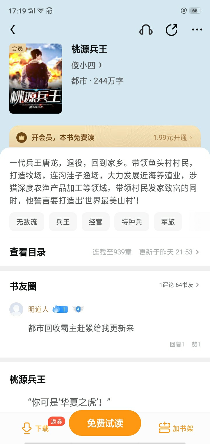 Tang Long, the military king of a generation, retired and returned to his hometown. Lead the villagers of Yutou Village to build a pasture and a fishing ground in Gouwazi, vigorously develop offshore aquaculture, and dabble in in-depth agricultural and fishery product processing and other fields. While leading the villagers to get rich, he vowed to create 'the most beautiful mountain village in the world'!