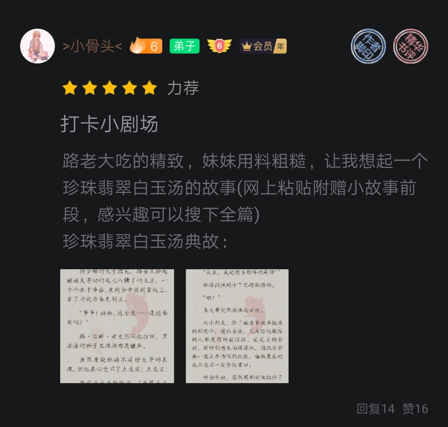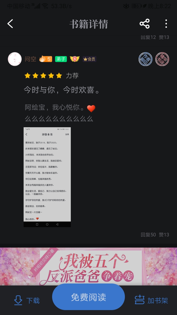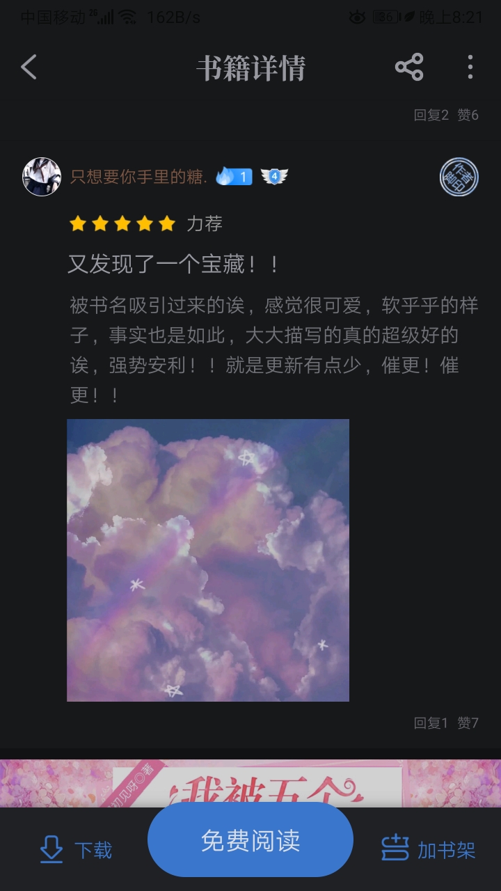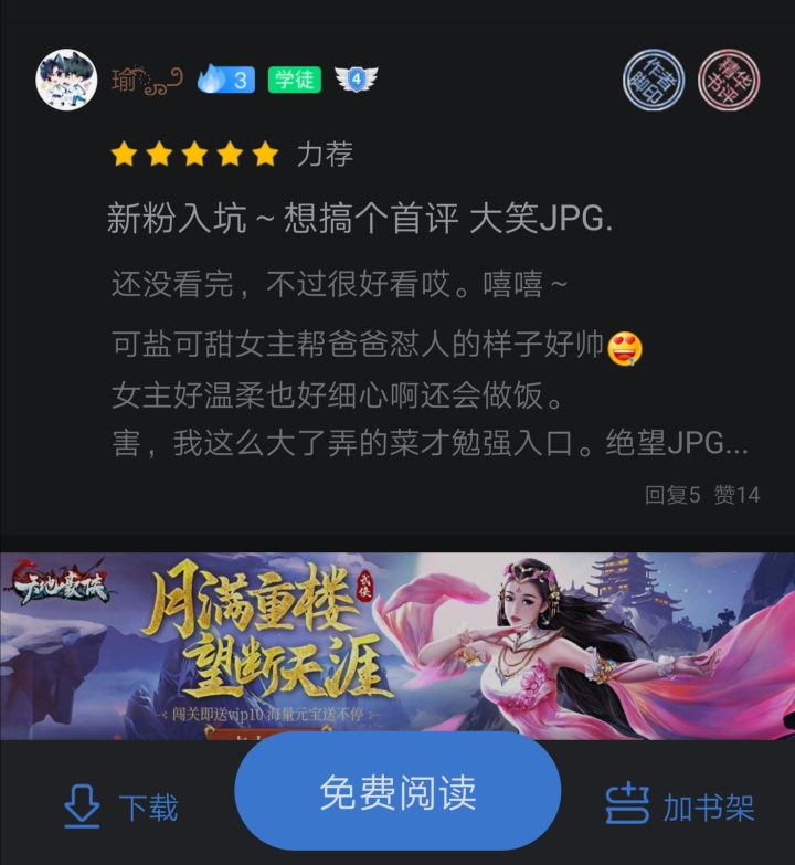 For the sake of Chacha, I deliberately read the books ranked before Chacha, and what I found were all the same cute new authors as Chacha. I found that the reason why they are ranked ahead of Chacha is because the cuties in their book circle post all kinds of book reviews - some express love for the author, some chatter, discuss the characters in the book, talk about their own feelings, or give advice... Here's a bit of praise for the cutie "Yoghurt Shake". You can check out this cutie's book review. If you have anything unhappy or want to vent but can't find anyone to complain to, you can post it. Xia Xia will be your close friend online all day long. Not only can you chat with each other this way, but you can also increase your activity level and get the best of both worlds. Why not have fun? So cuties, can you please take a moment? If you don't want to post a comment, you can also give a like or comment to the cuties who have posted comments so that Xia Xia will know that there are many cuties who support Chacha just like Xia Xia. I love you~(^з^)-♡