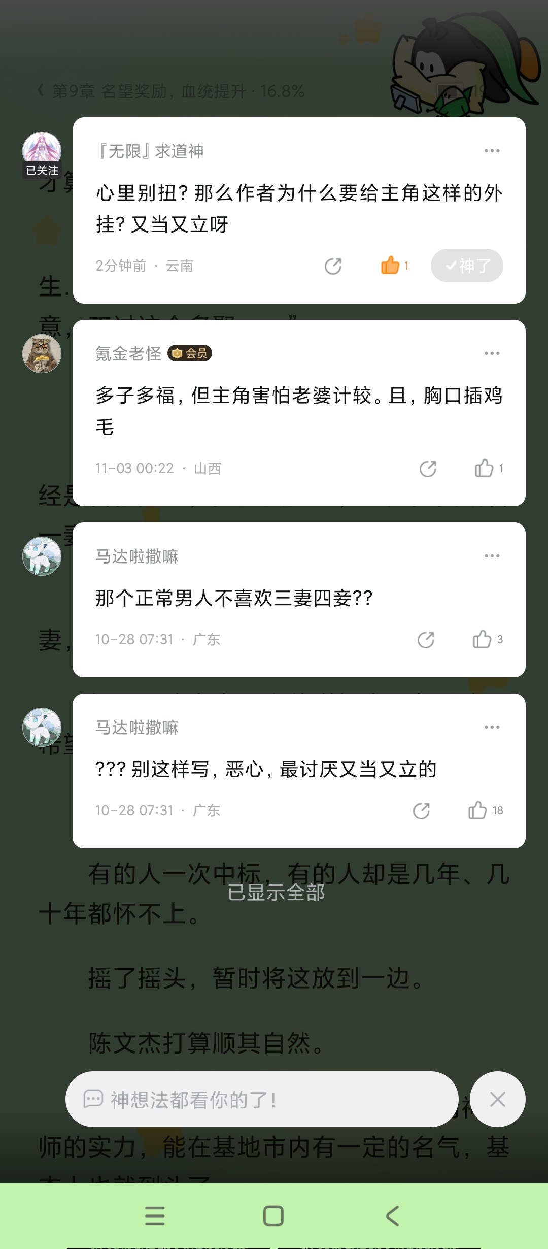 Withdrew, I was speechless and stood still. It's rubbish in itself, relying on mental power and coveting the free Nine-fold Thunder Knife. Haven't you read the original work? Are mental powers short of money? 😐😐😐😐😐😐😐
