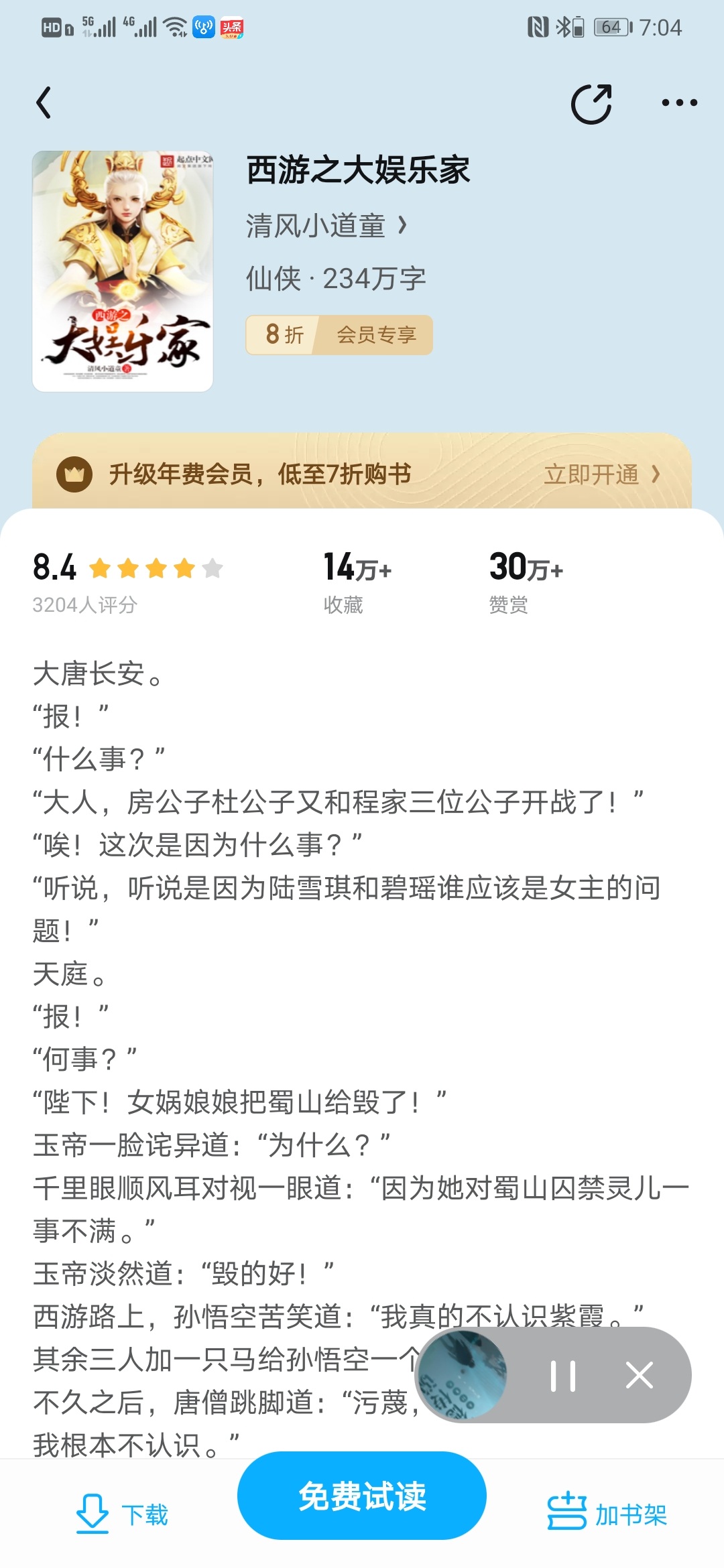 Qin Hao traveled to the West with the system and opened a magical bookstore. The store has a variety of novels, movies, games, mobile phones, and computers. Guanyin: "Buddha, Sun Wukong, that monkey is crazy, saying that I want this day to be no longer able to cover my eyes. He has already led all the demon kings to attack at the foot of Lingshan Mountain!" Tathagata: "Jade Emperor, it is God's will for Buddhism to travel eastward, why are you destroying the path to obtain scriptures?" Jade Emperor: "(Buddha is the Tao) Haven't you heard of it?" Mortal: "Fahai, Fahai, you don't understand love. , Leifeng Tower will fall!" When the Cowherd wants to be the first son-in-law in the three realms, when the Roaring Dog claims to be the Black Emperor and wants to accept the Seven Fairies as his pet, when Tang Sanzang is worried about the mobile phone bill... "Hurry up, help me up, I can still fight! I want to be the king!" Hong Boy was paralyzed on the ground, as if he was insane, but his bloodshot eyes were fixed on the computer. I became addicted to reading and got too involved in the drama. Games and movies poisoned the three worlds, and the world of Journey to the West was completely in chaos.