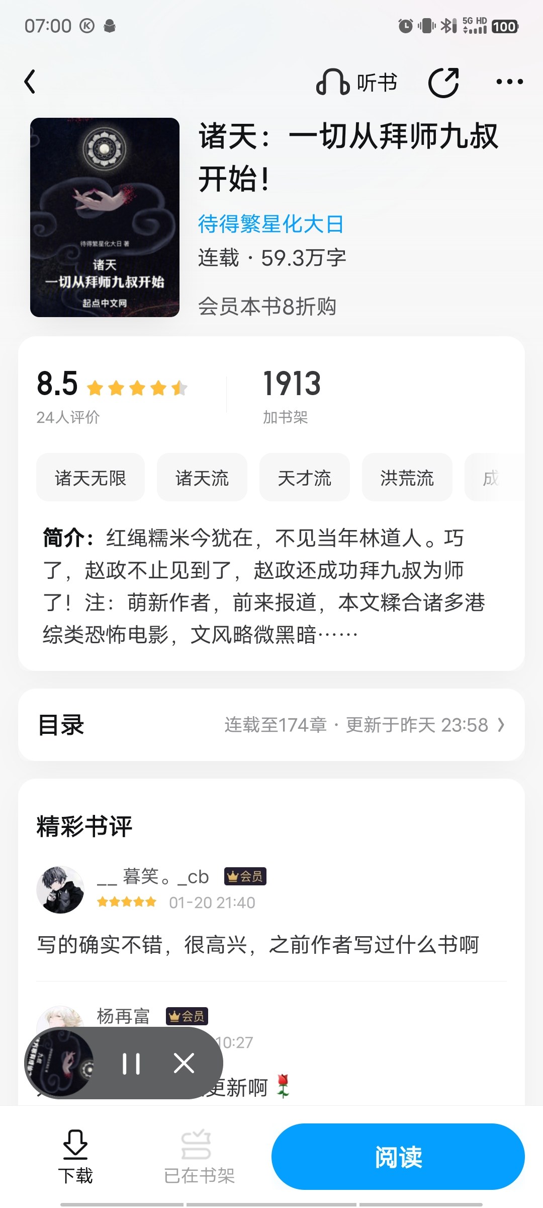 It looked pretty good at first, but it turned out to be over a hundred chapters in. The protagonist has such great talent, such a fast cultivation speed, and is still in the middle stage of refining Qi. And whether it is the main world or the Hong Kong comprehensive world, he likes to meddle in other people's business, and is beaten half to death every time. He also likes to babble, and every time he says that he just wants to live. People who just want to live will meddle in other people's business? People who just want to live will not work hard to improve themselves when their level is low, but they will just kill enemies and like to chatter?
