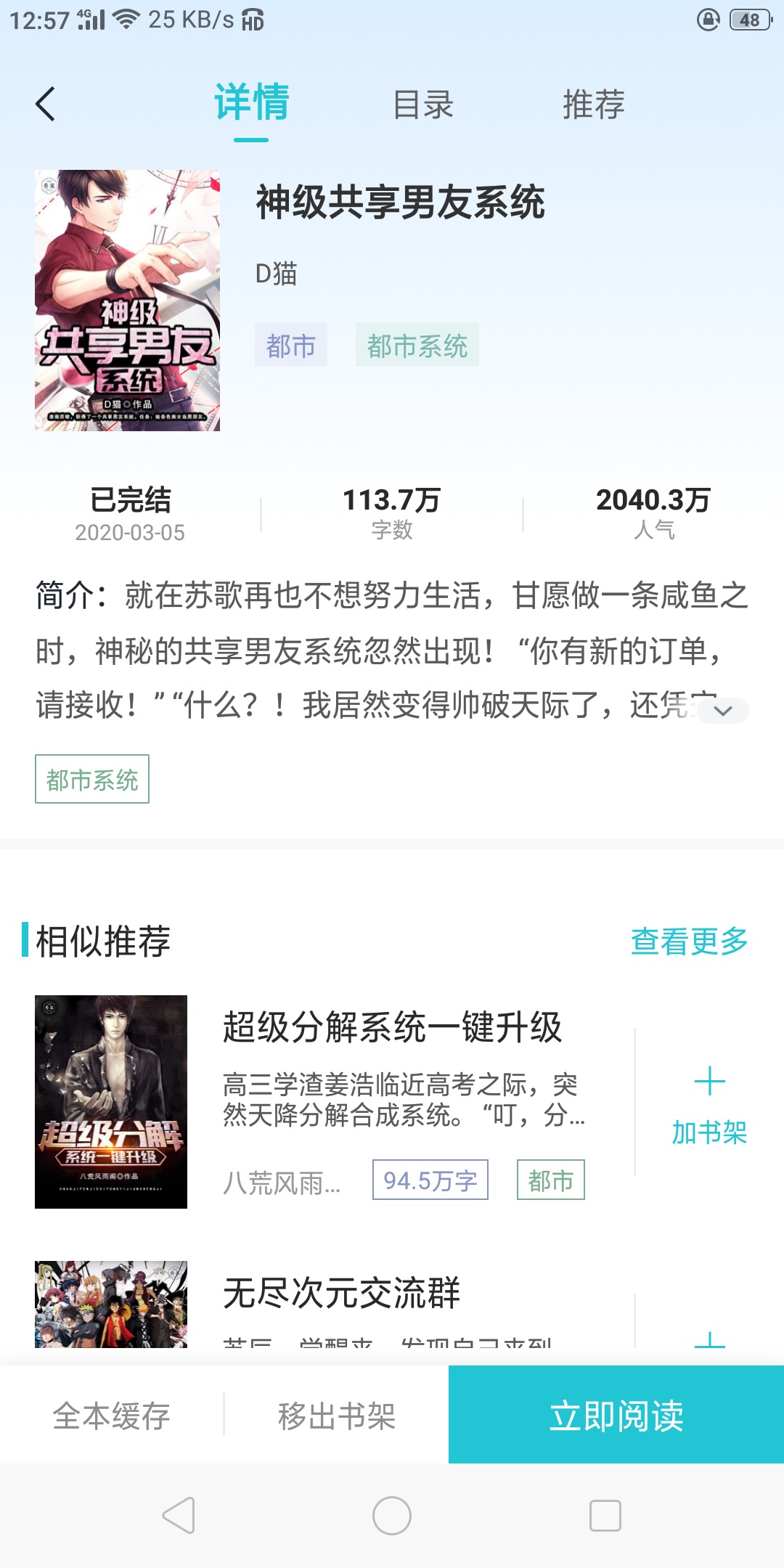 Just when Su Ge no longer wanted to work hard in life and was willing to be a salted fish, the god-level boyfriend system suddenly appeared! "You have a new order, please accept it!" "What?! I have become incredibly handsome, and I got two skills and a newbie gift package of one million cash out of thin air!" "What?! The task is to be the boyfriend of the goddess who placed the order? After completing the task, you can get the magical skills designated by the goddess!" "When you talk about love, there are such rich rewards. It is so exciting to think about it! Take the order! Take the order! Take the order immediately!"